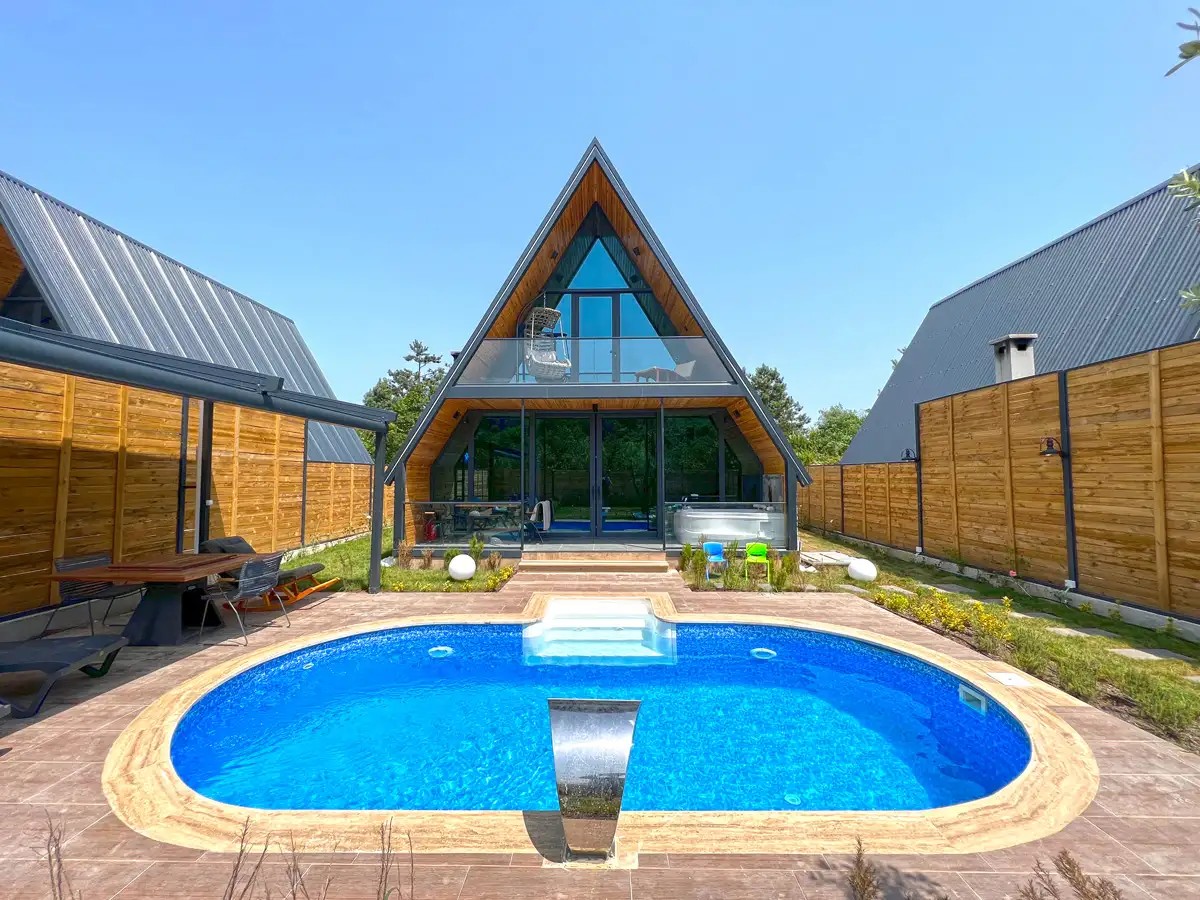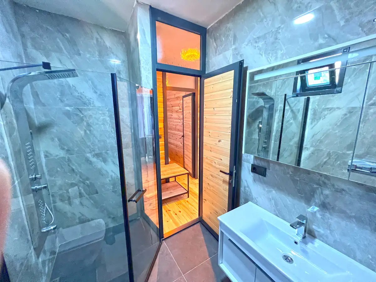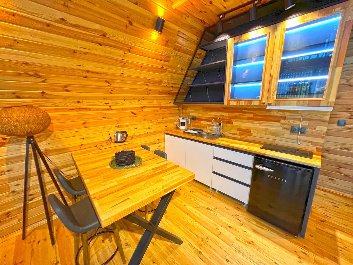 Salon: Açılır L koltuk, şömine, jakuzi, yemek masası, televizyon, wc & banyo, Wifi bulunmaktadır.