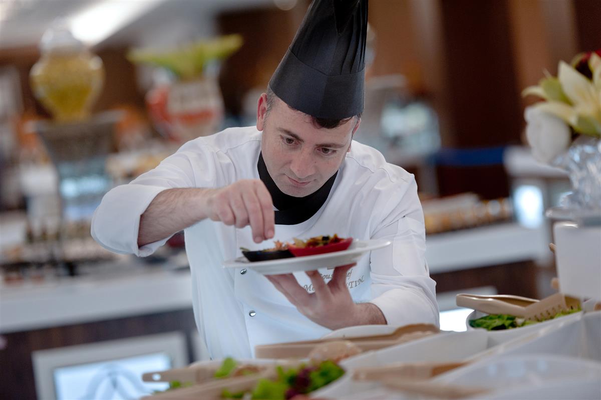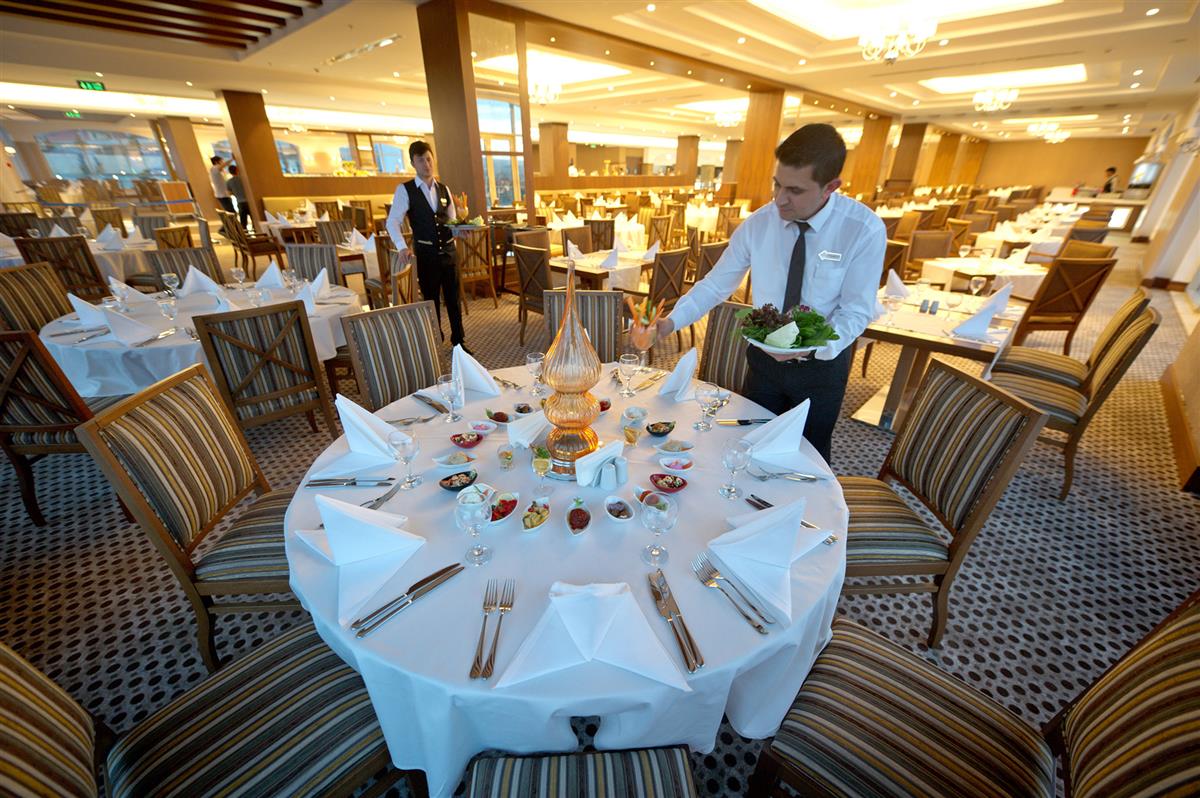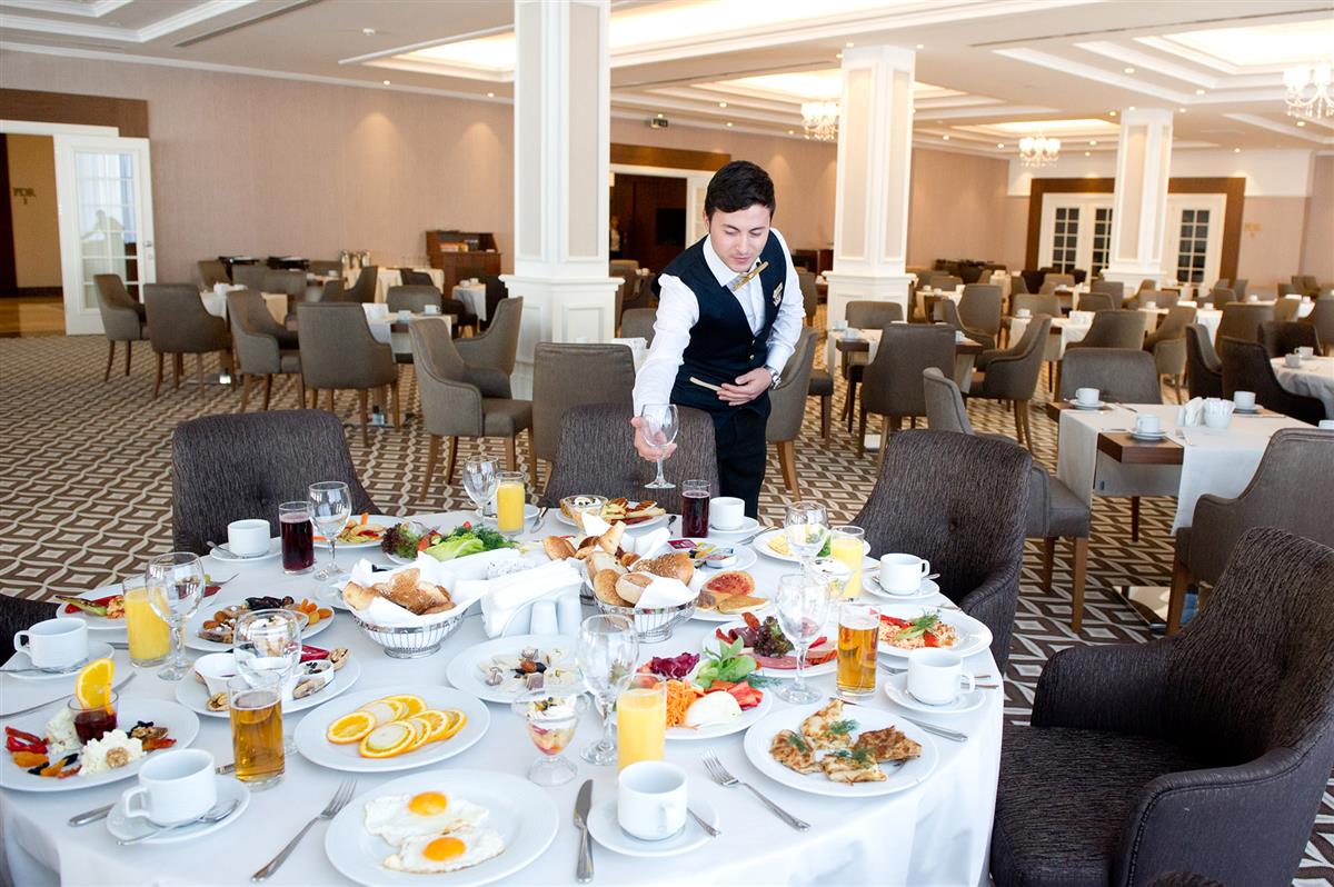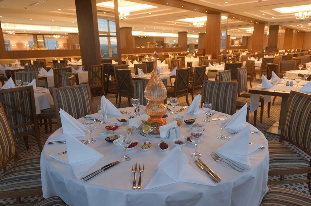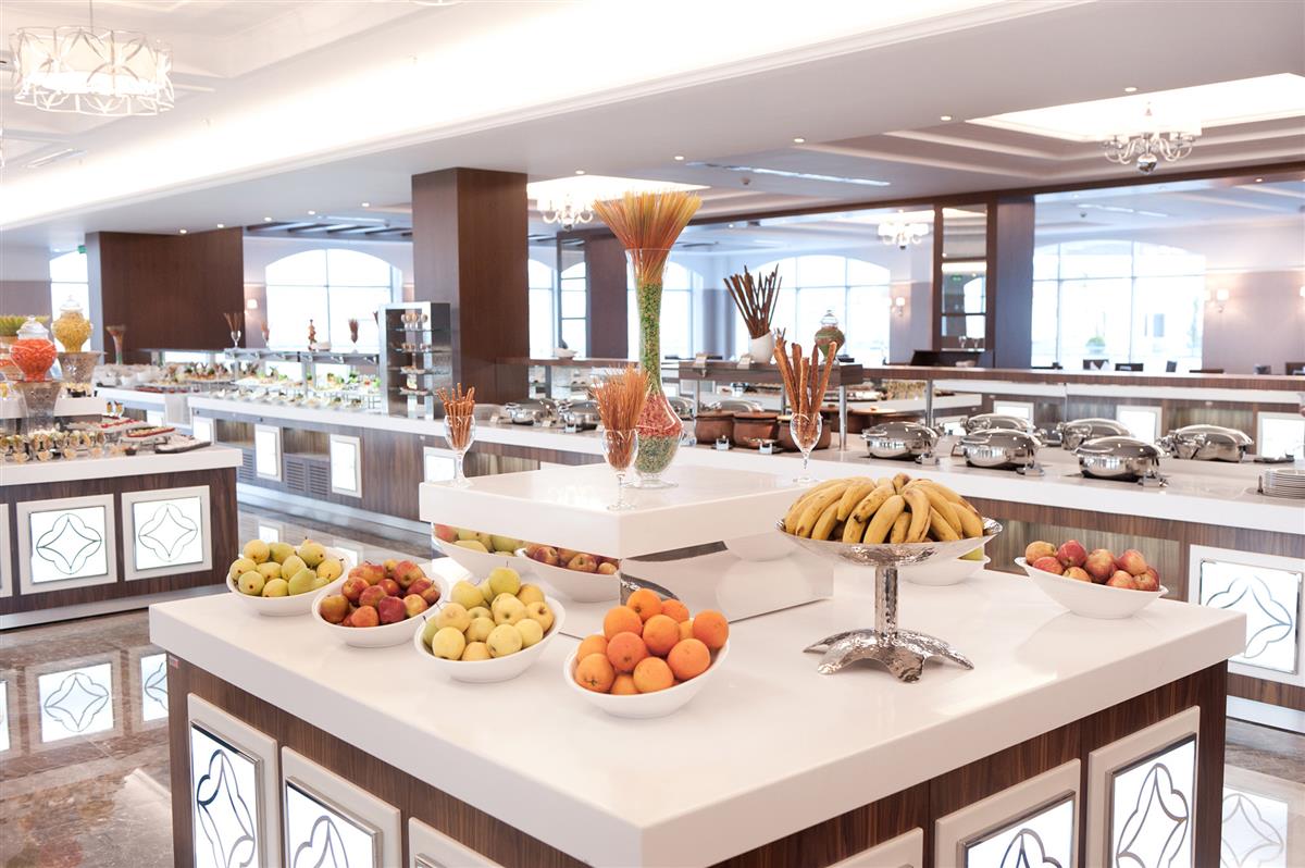 A la carte restoran rezervasyonlu ve ücretli. 24 saat oda servisi ücretli. Ana restoranda tesisin belirlemiş olduğu günlerde özel Türk ve dünya mutfakları sunuluyor. Misafir sayısına göre set menü uygulanır.