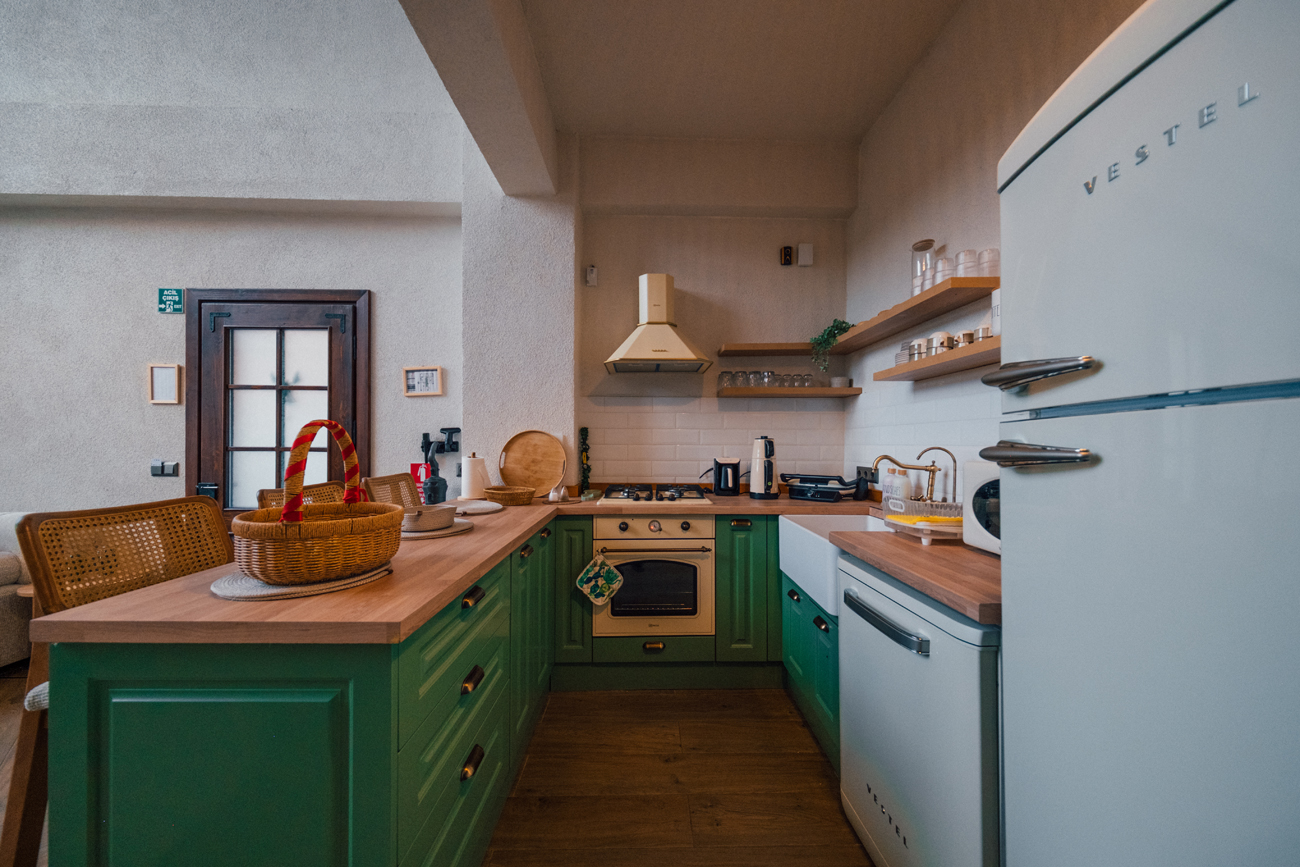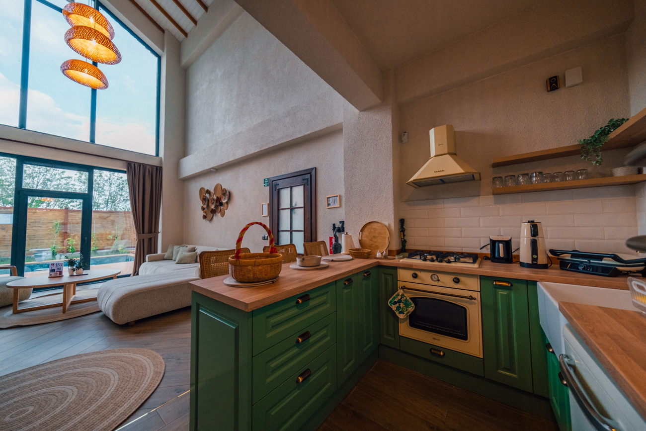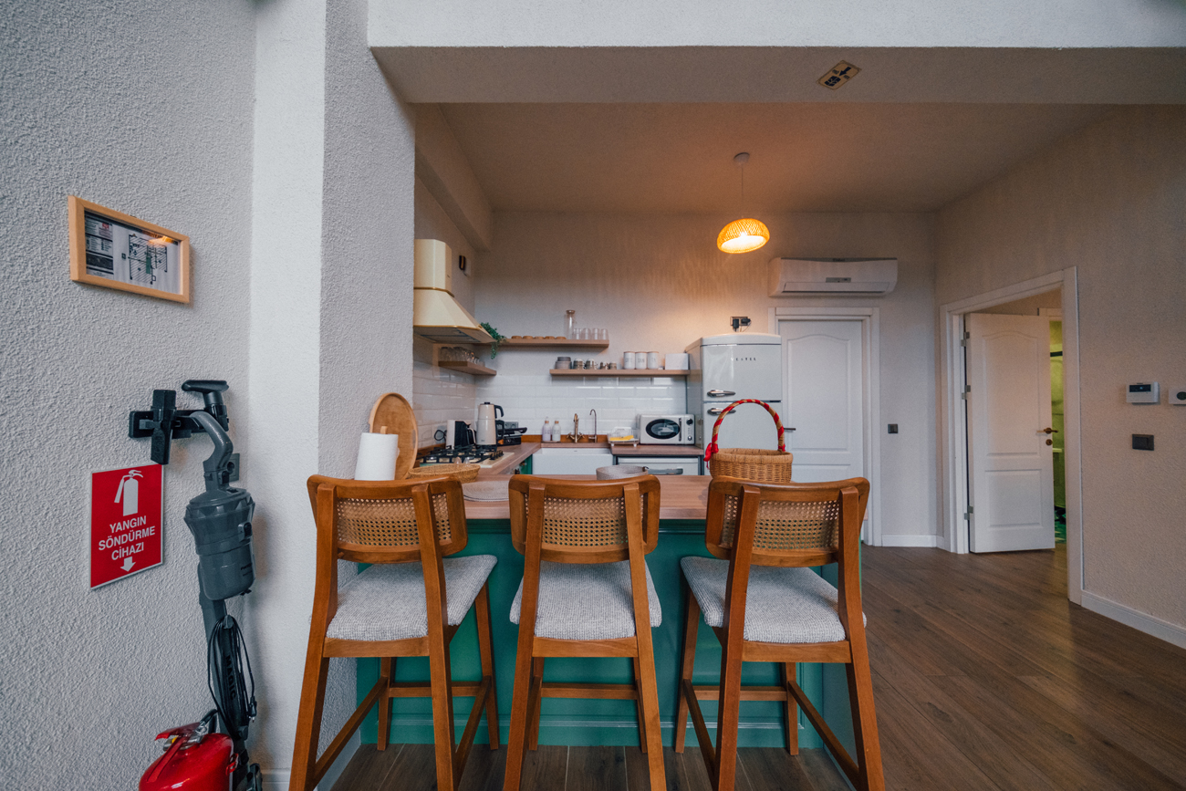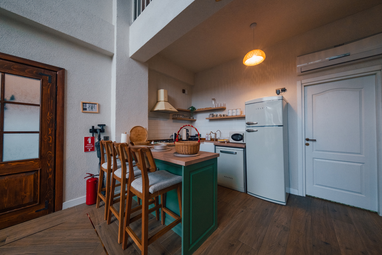 Mutfak: Ankastre Ocak, buzdolabı, ketle, mikrodalga, tost makinesi, çaycı, fırın, kahve makinesi ve diğer mutfak araç gereçleri bulunmaktadır.
