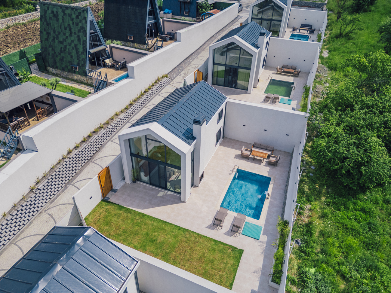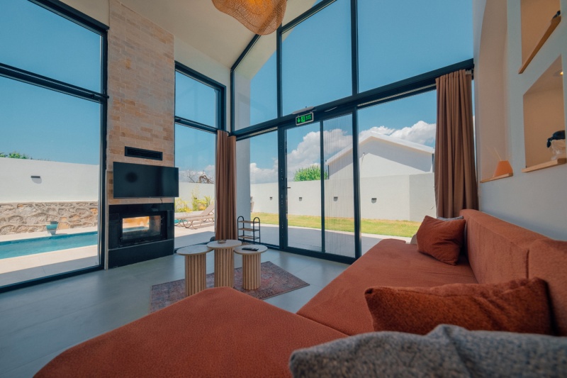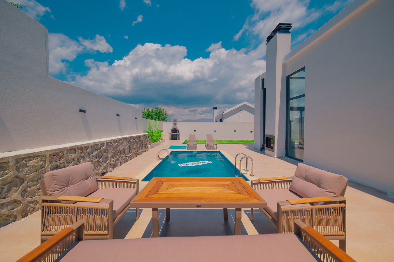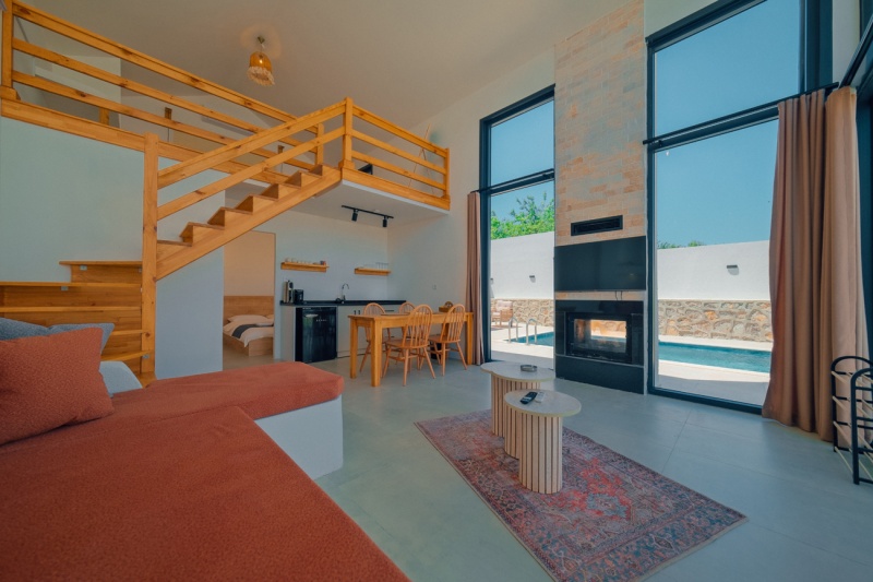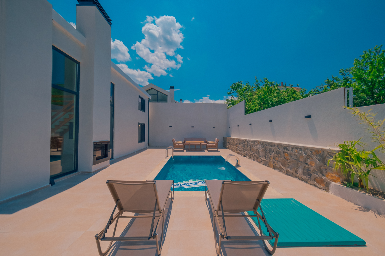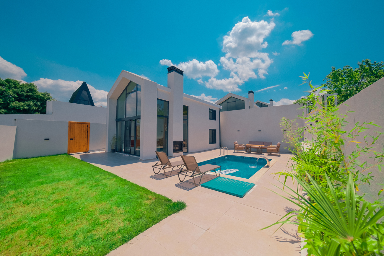 Özel Havuzlu Dubleks Bungalov 2+1: 5 adet bulunmaktadır. Özel ısıtma havuzlu ve jakuzilidir. Max. 5 yetişkin konaklayabilmektedir.