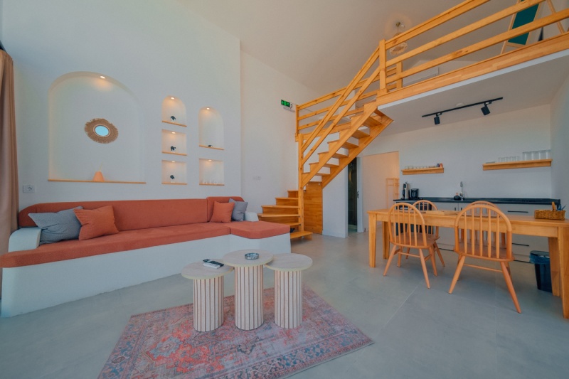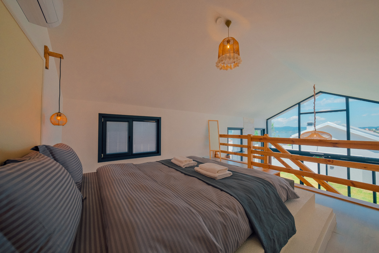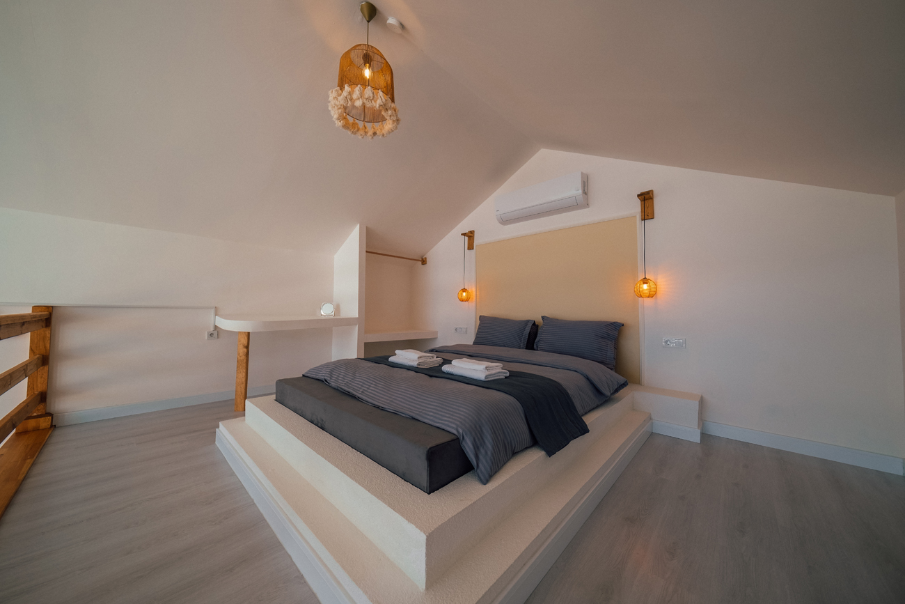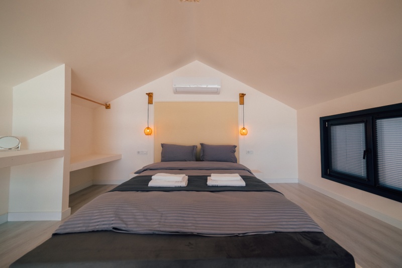1.Yatak Odası (Asma kat) : Çift kişilik yatak ve elbise dolabı mevcuttur.