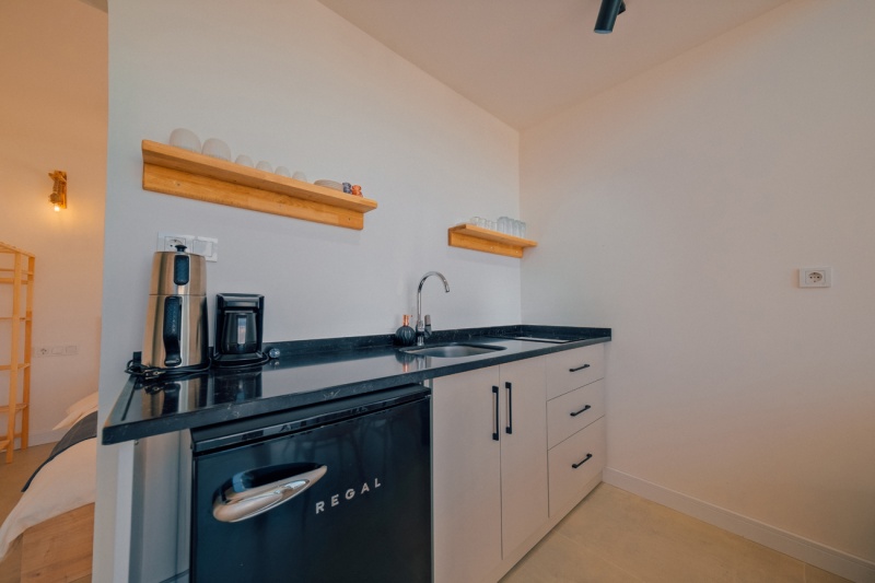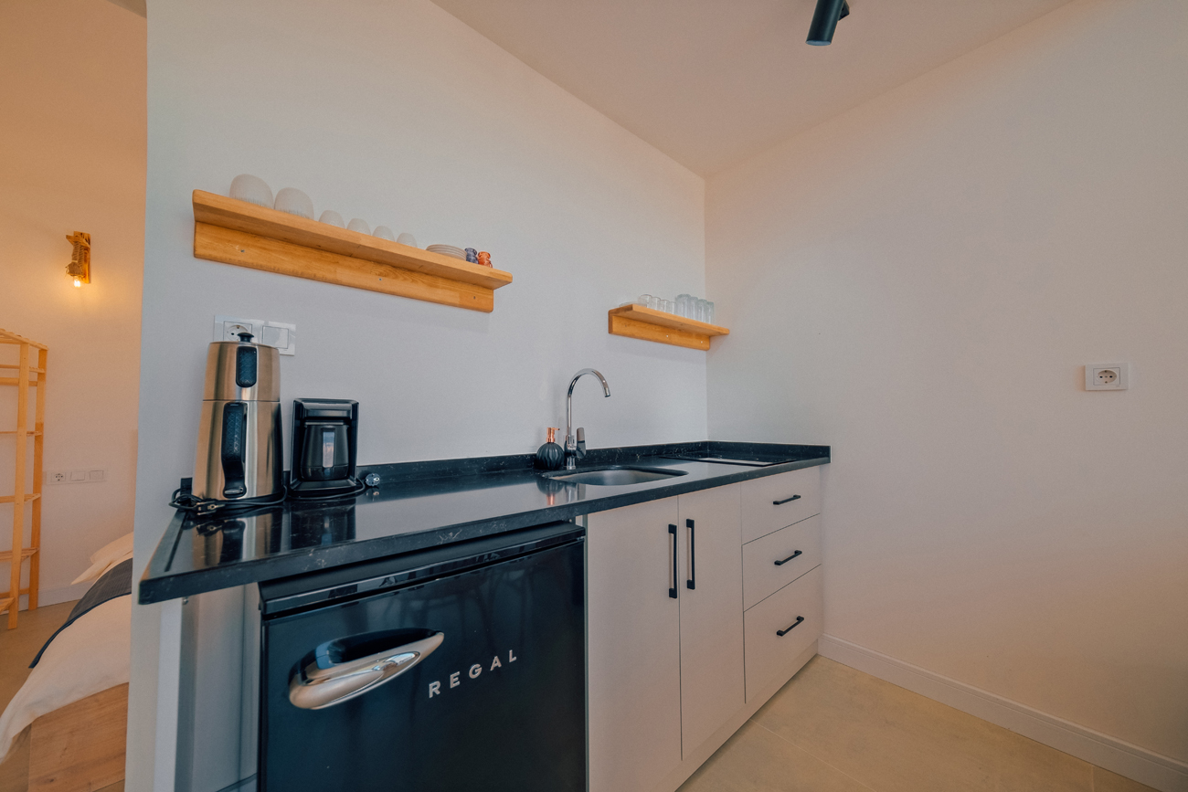 Mutfak: Ocak, Çaycı, kahve cezvesi, kaşık , çatal ,bıçak ,tabak, çay bardağı , kahve bardağı, mini buzdolabı ve diğer mutfak gereçleri bulunur.