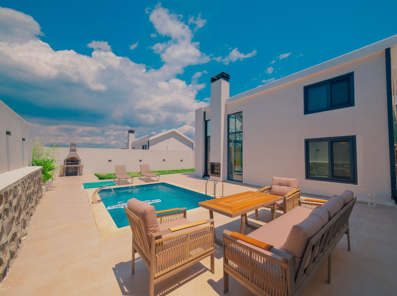 Bahçe: Barbekü, özel ısıtmalı havuz, şezlong ve bahçe mobilyaları bulunmaktadır.