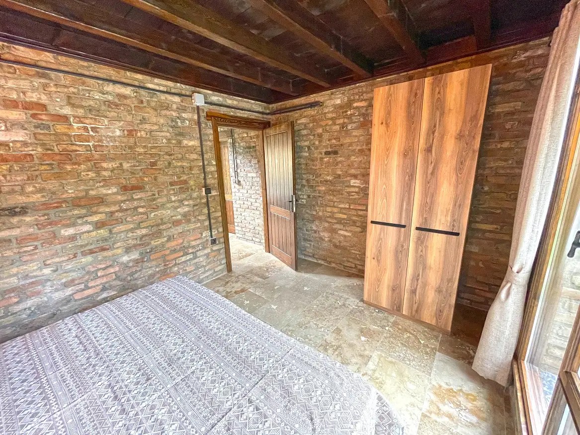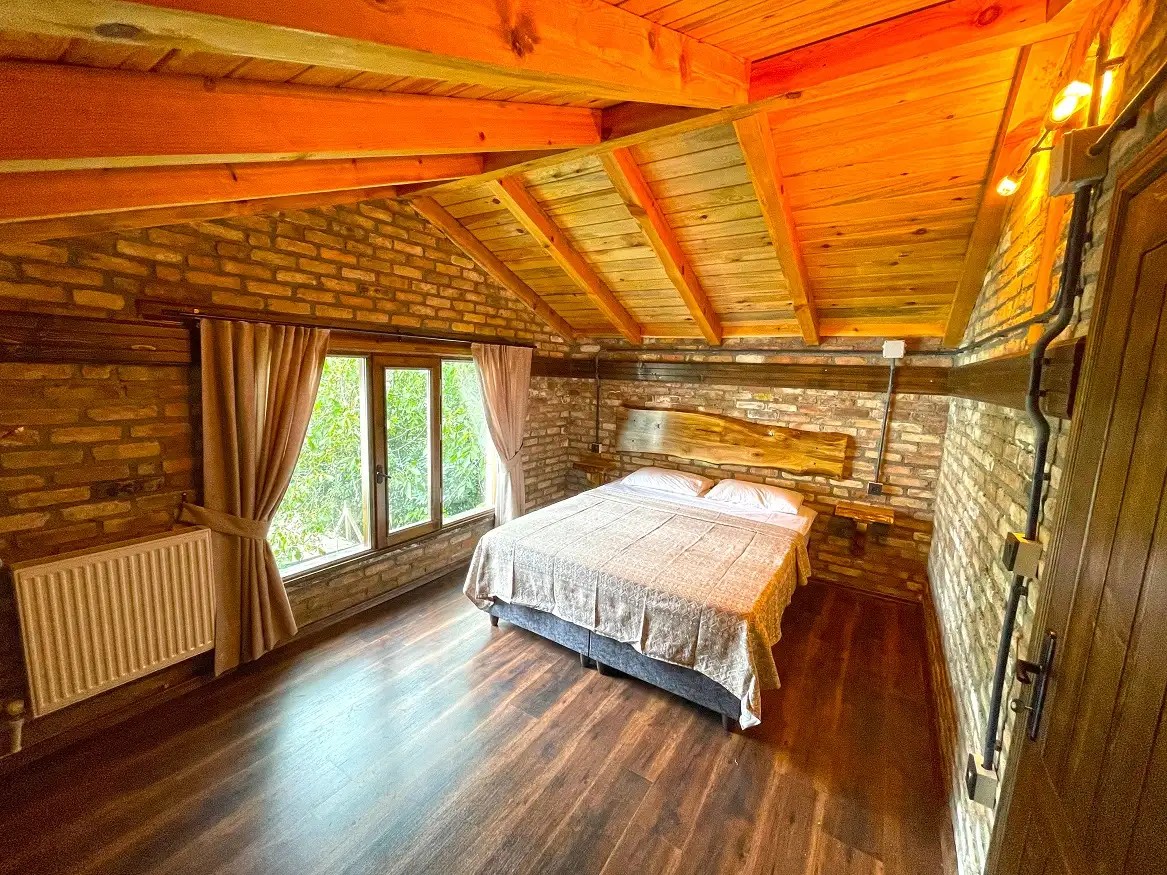 2. Yatak Odası (alt kat): Çift kişilik yatak, elbise dolabı