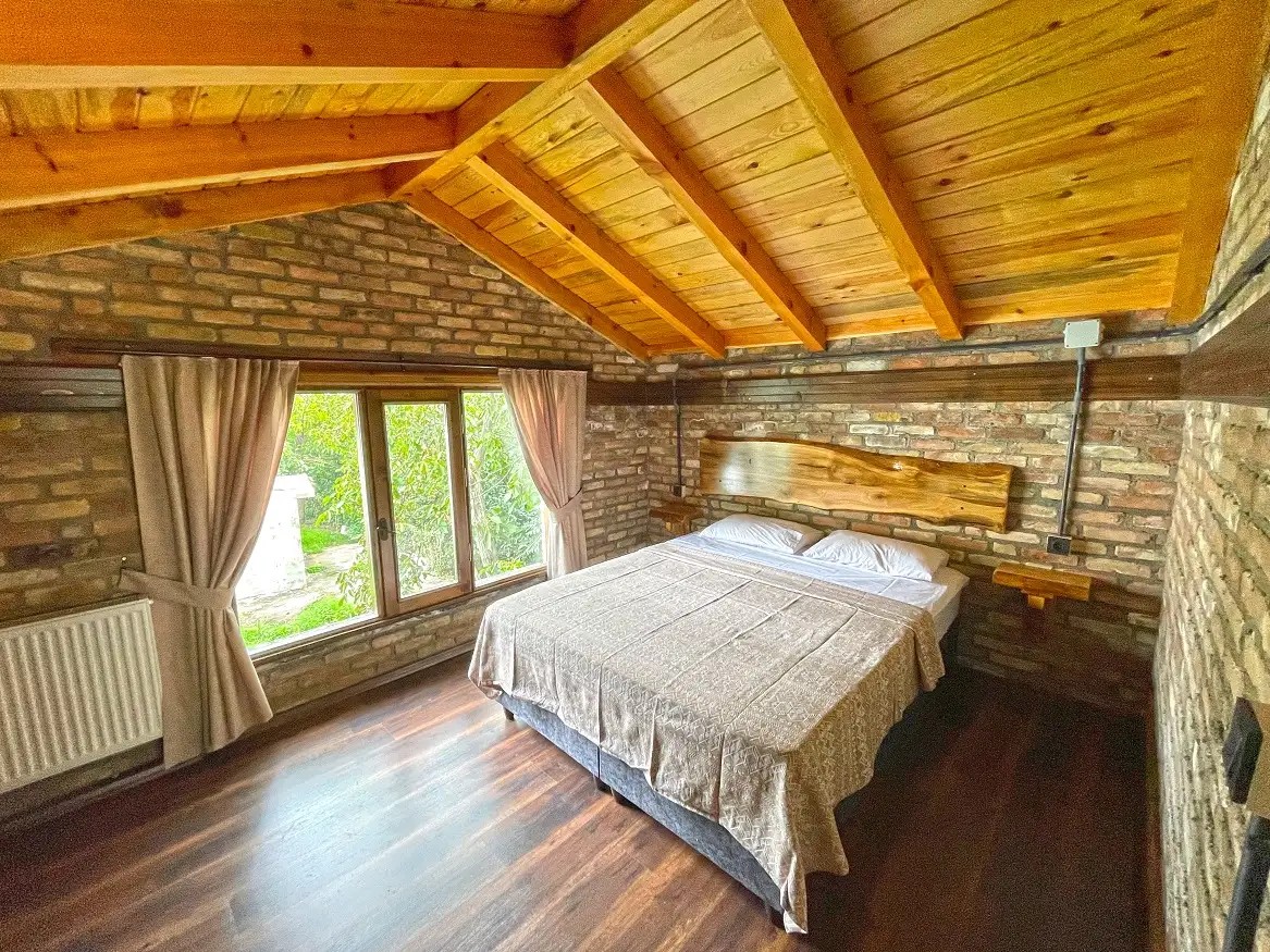 1. Yatak Odası (üst kat): Çift kişilik yatak , elbise dolabı, ebeveyn banyosu, doğalgaz peteği