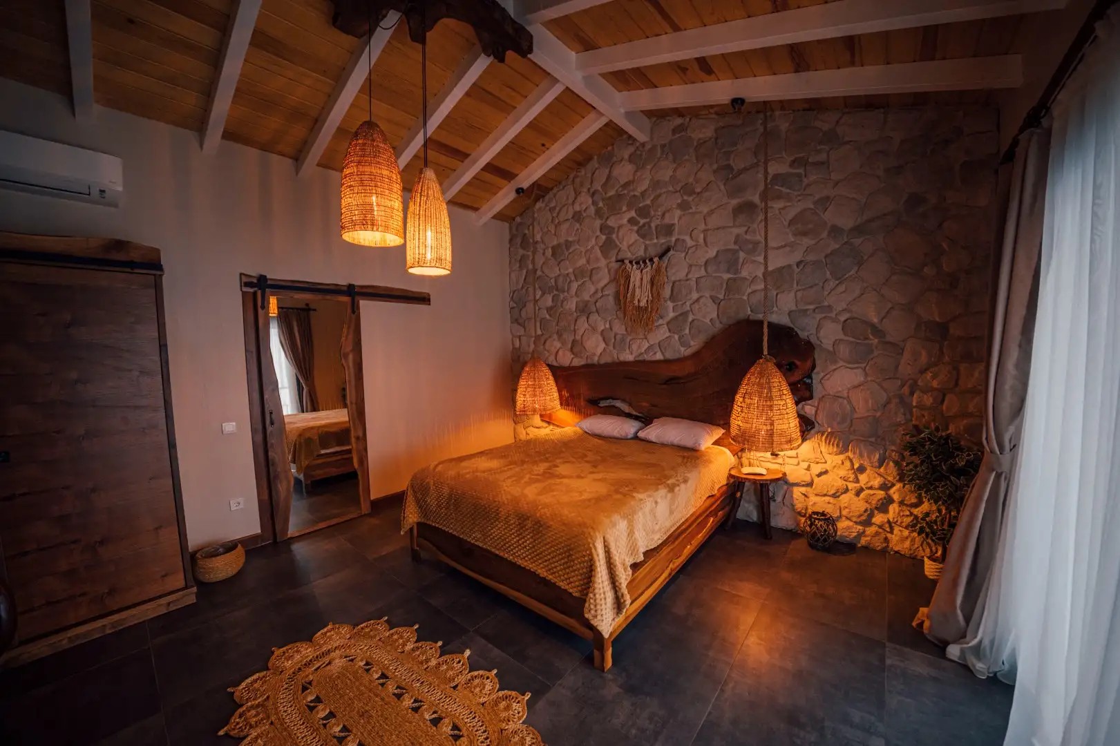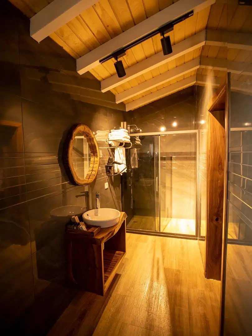 Şömineli Jakuzili Villa: 90 metrekaredir. Max. 5 yetişkin konaklama sağlayabilmektedir. Toplam 4 adet bulunmaktadır.