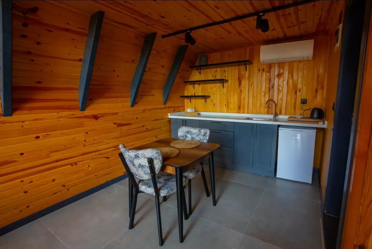 Salon: Açılır kanepe, şömine, yemek masası, wifi, TV(netflix), wc&banyo bulunmaktadır.