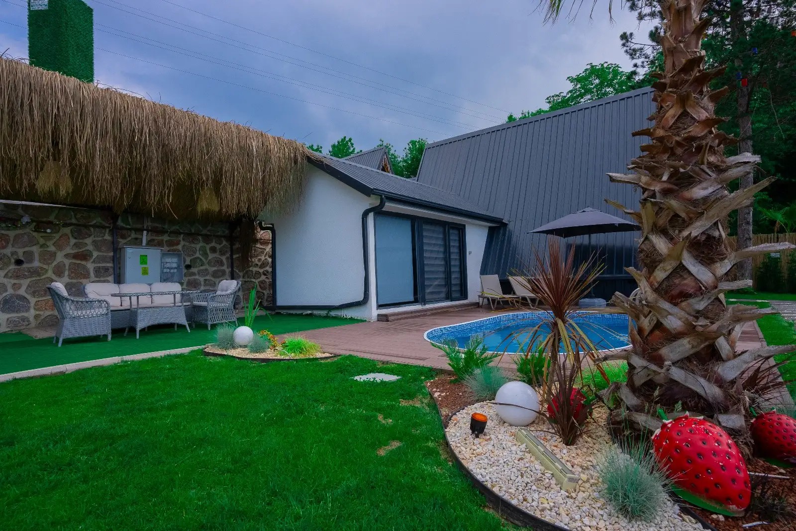 Bahçe: Özel Isıtmalı havuz(3x5 m 1.50 m derinlik), barbekü, şezlong, şemsiye, salıncak, bulunmaktadır.