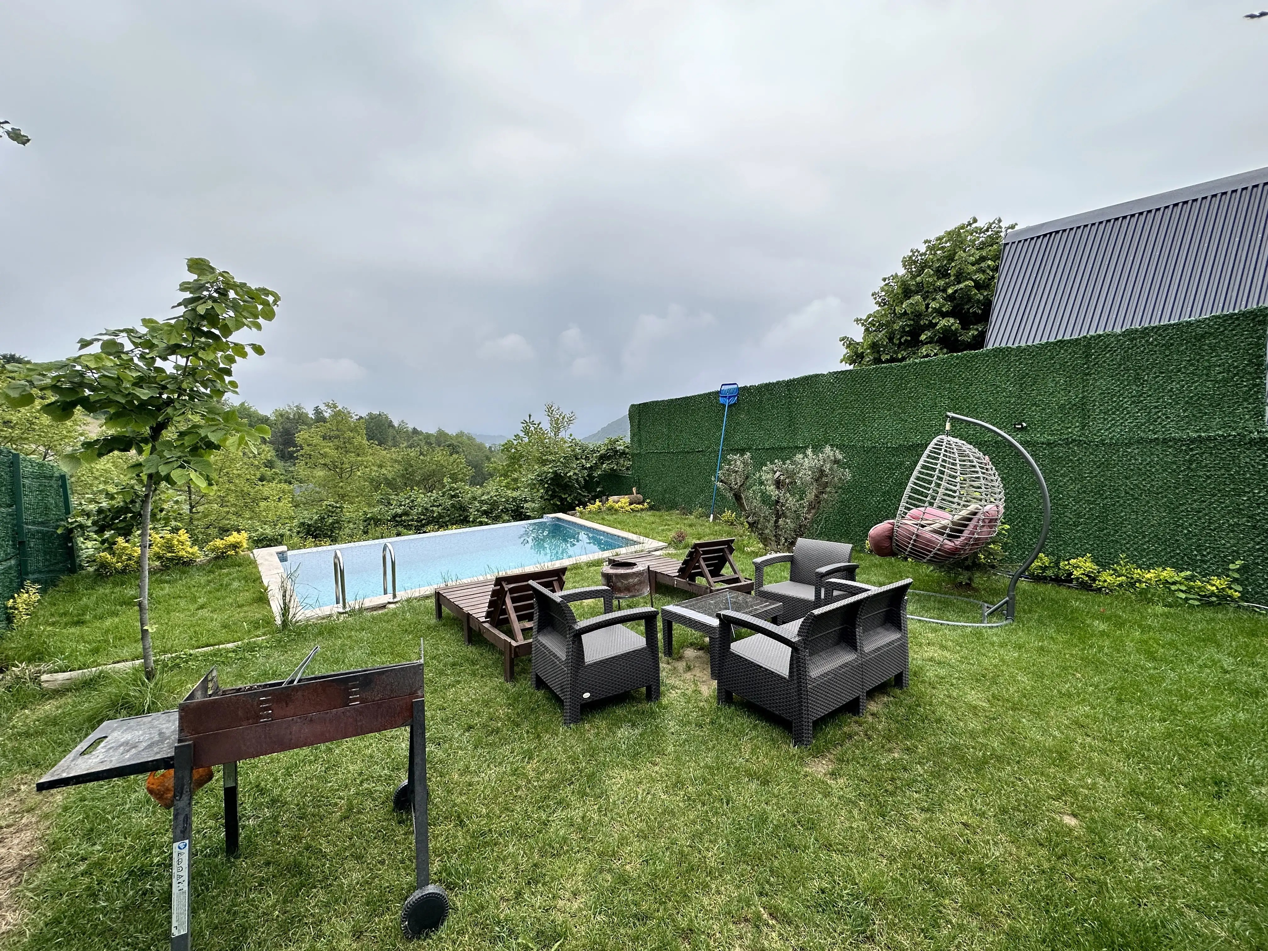 salıncak, bahçe mobilyaları, barbekü bulunmaktadır.