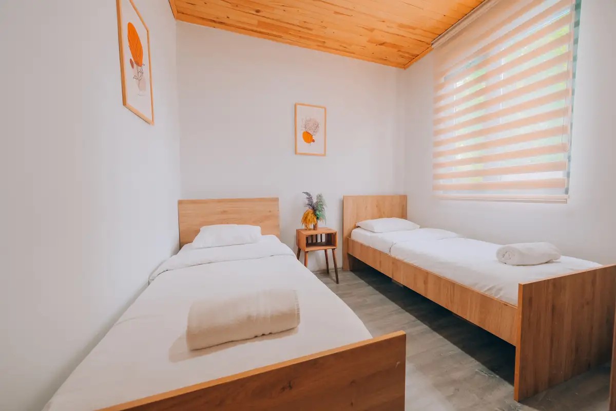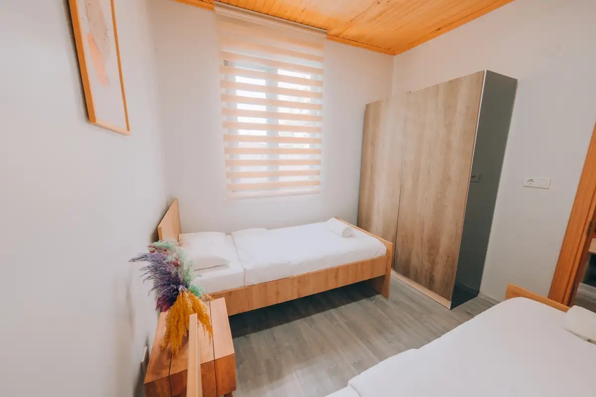 2.Yatak Odası : (Alt kat, ara kapılı) İki adet tek kişilik yatak, elbise dolabı