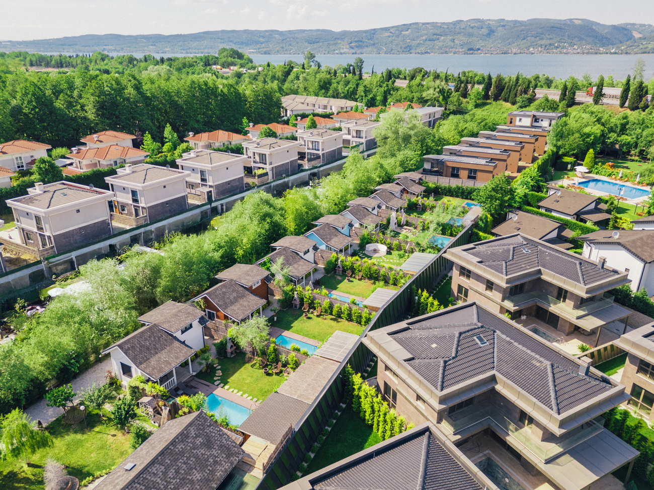 Bahçe: Özel Isıtmalı Havuz (4 tanesi 2.5x5 1.50 m derinlik, 3 tanesi 3x7 m 1.50 m derinlik), bahçe mobilyaları, ateş kazanı, şezlong.