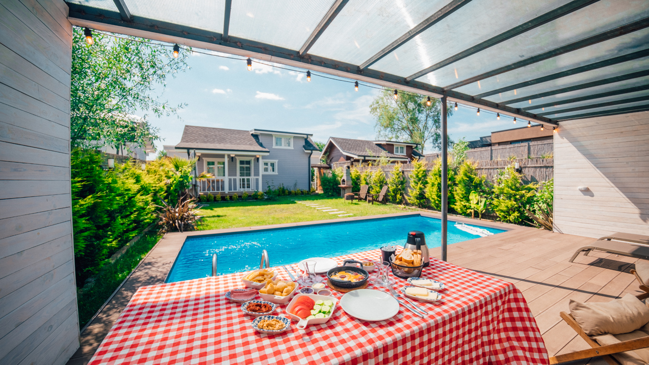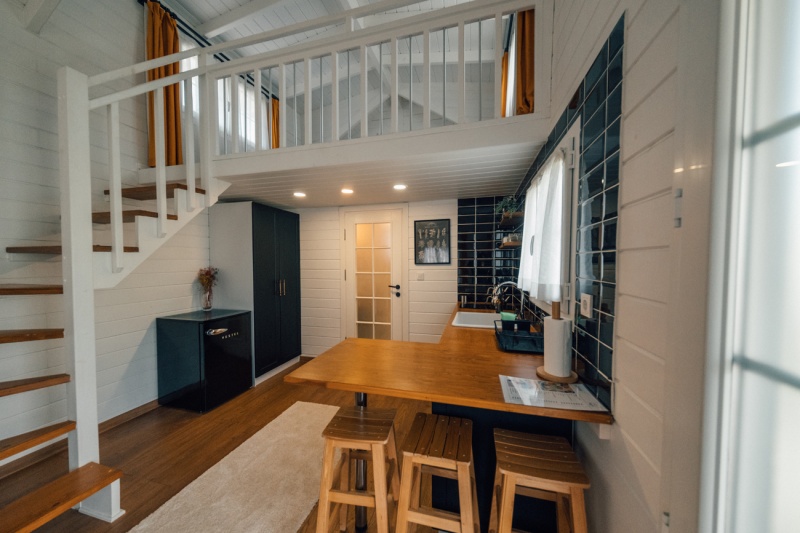 Özel Havuzlu Tiny House: 7 adet bulunmaktadır. Max. 3 yetişkin ya da 2+2 çocuk konaklayabilmektedir. Çocuklar ve ilave kişi salondaki koltukta konaklayabilmektedir.