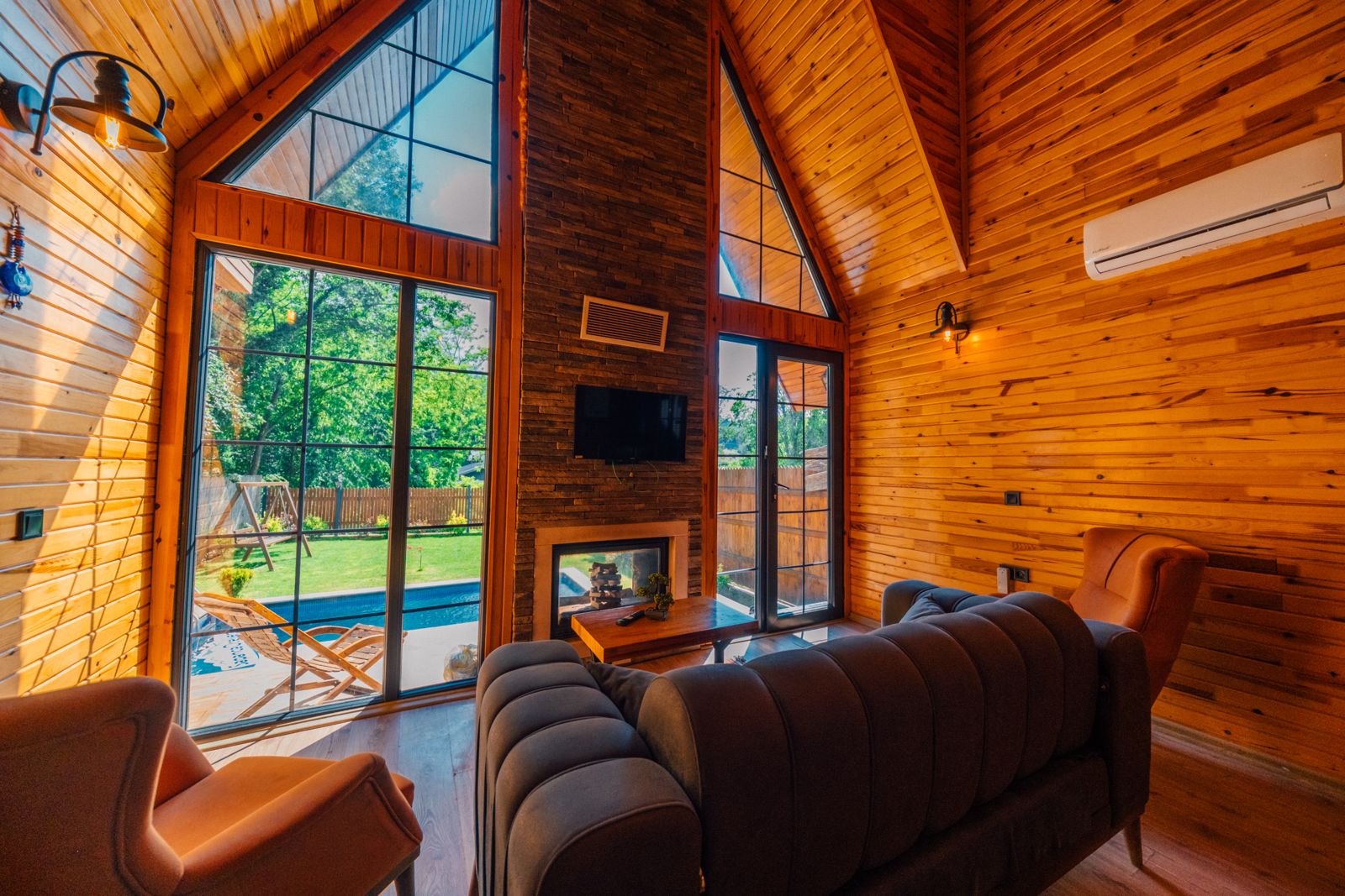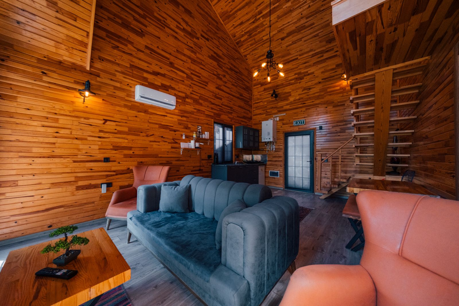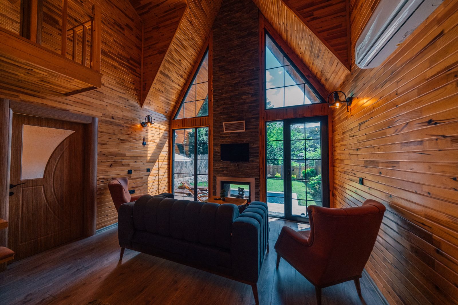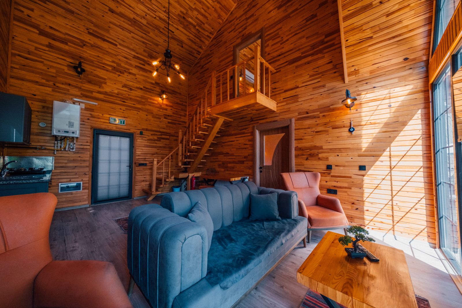 Salon : Koltuk bulunur, TV (Netflix desteklemektedir.) , çift taraflı şömine, wifi, klima bulunmaktadır.