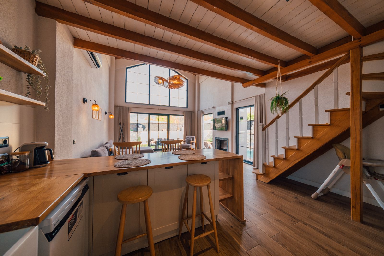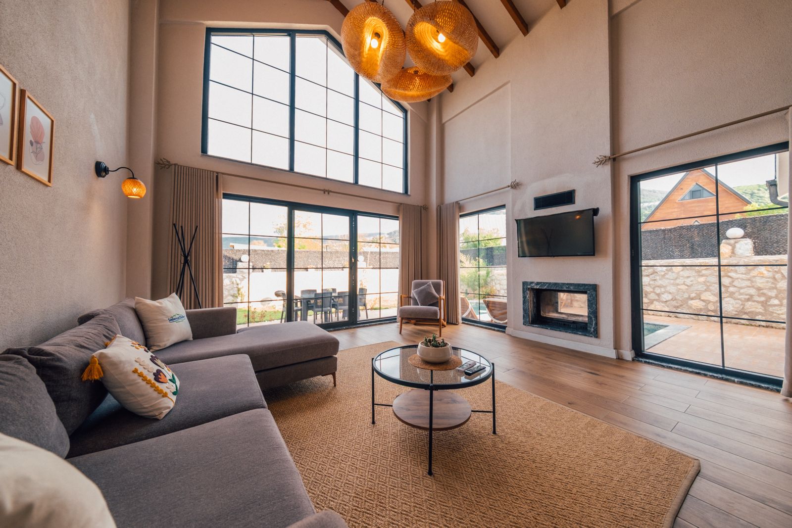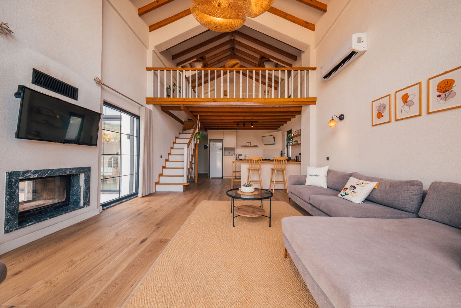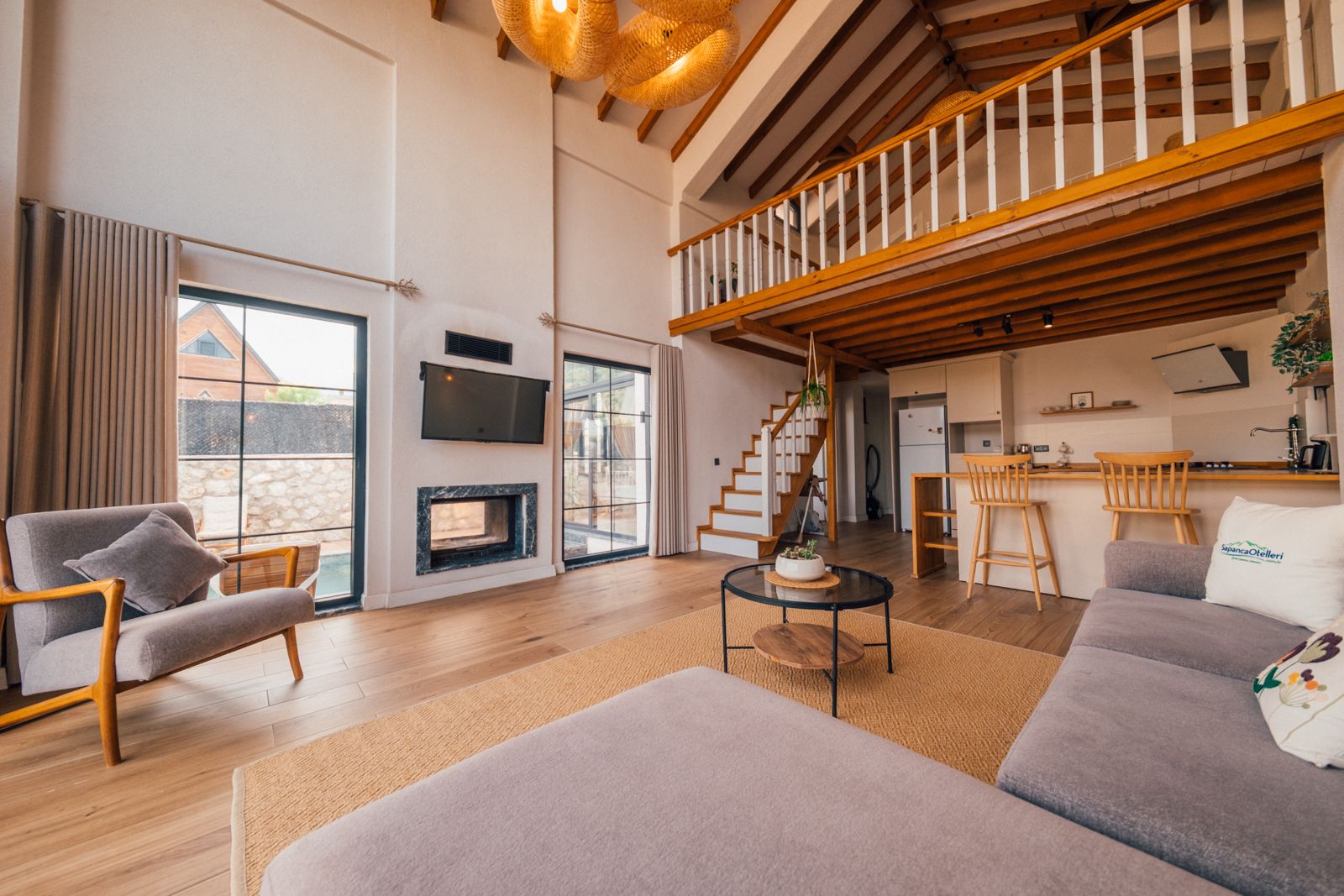 Salon: Açılır kanepe, şömine, yemek masası, televizyon, Wifi, Wc & Banyo bulunmaktadır.
