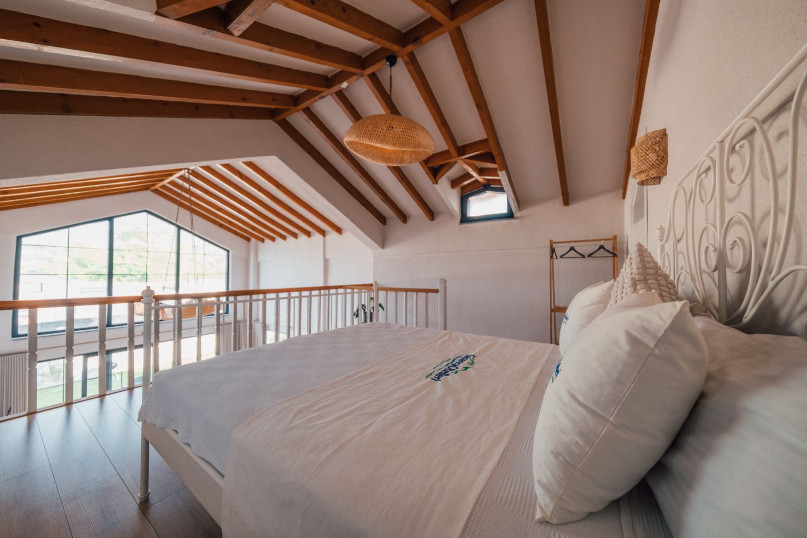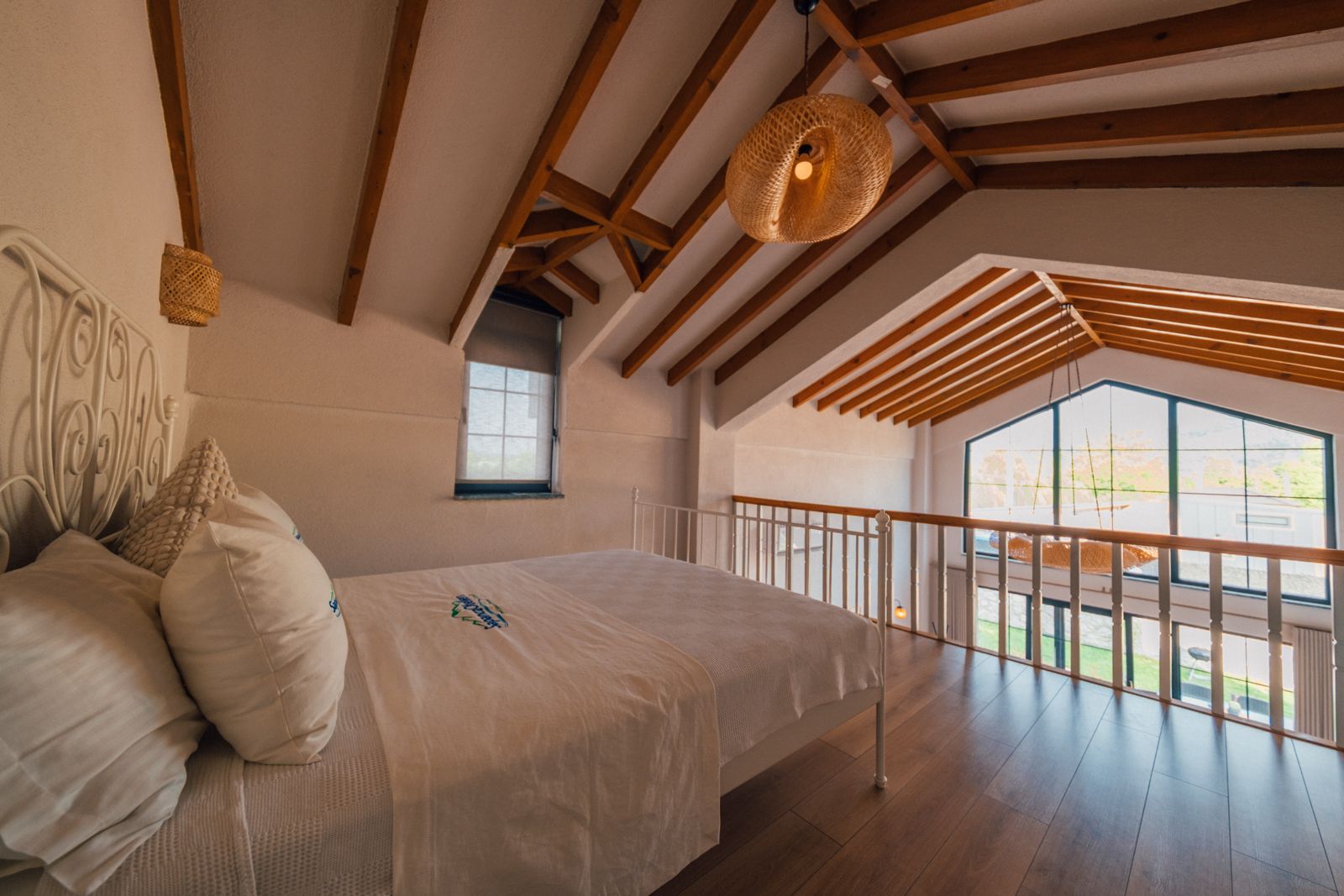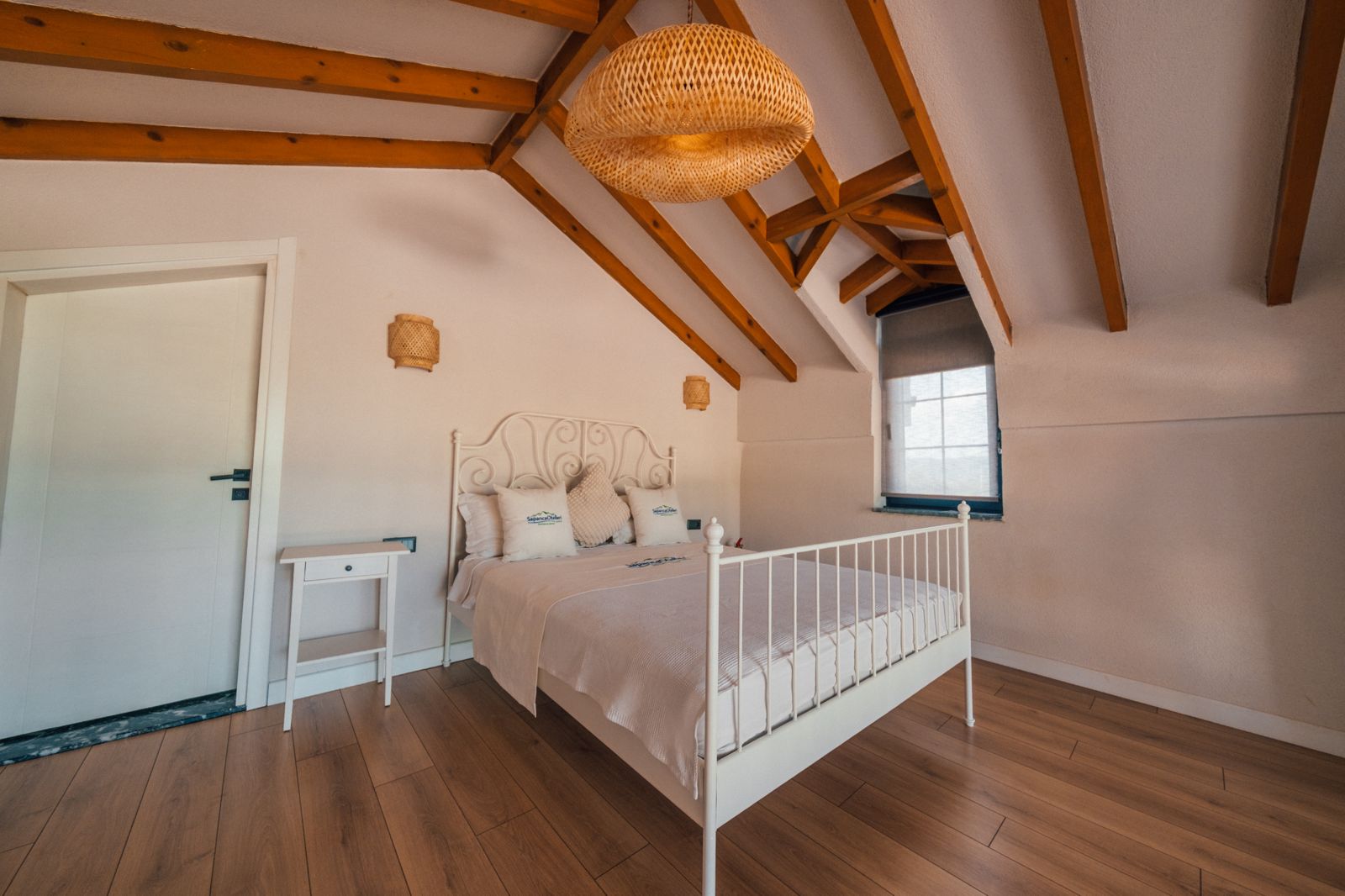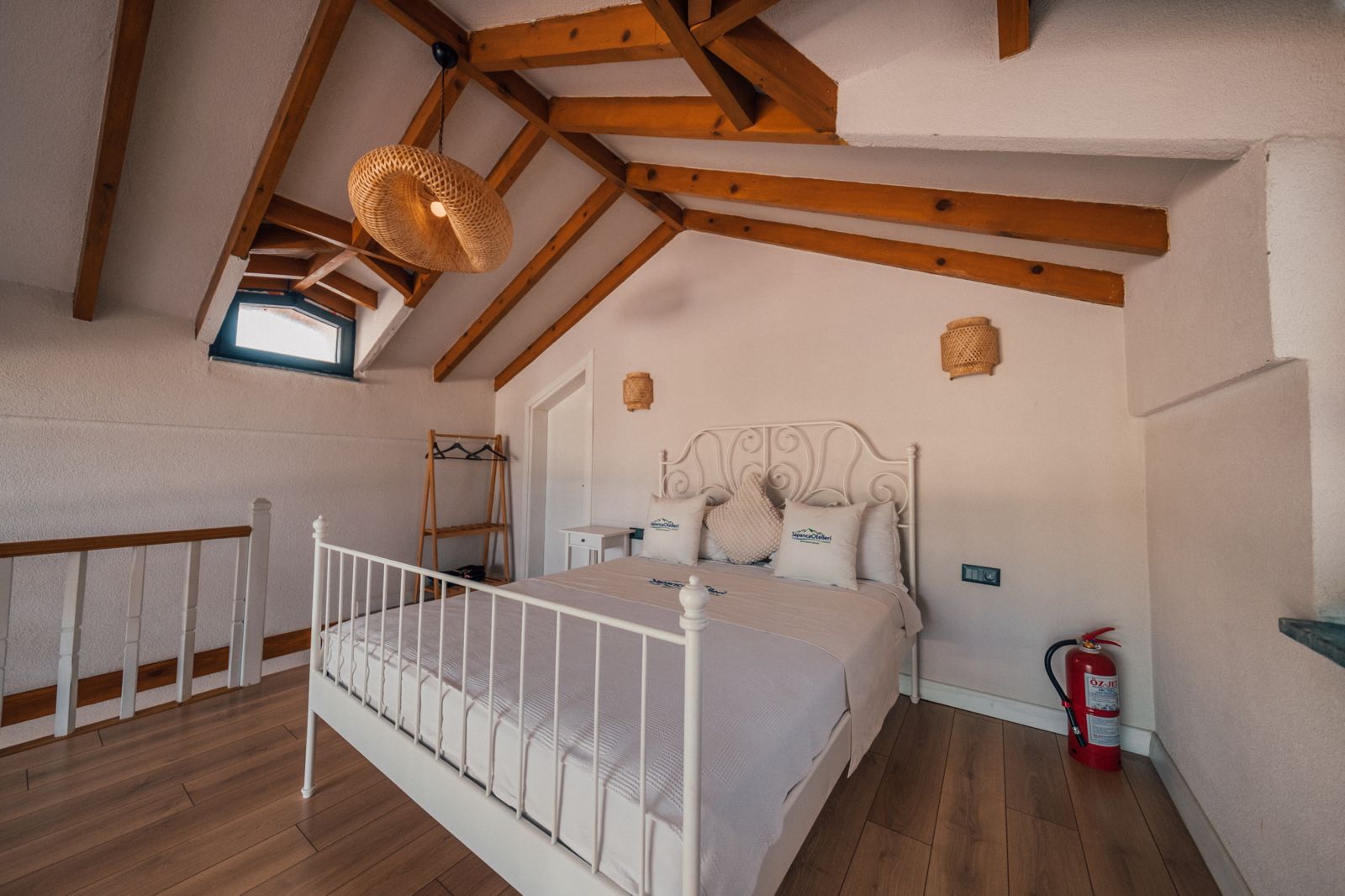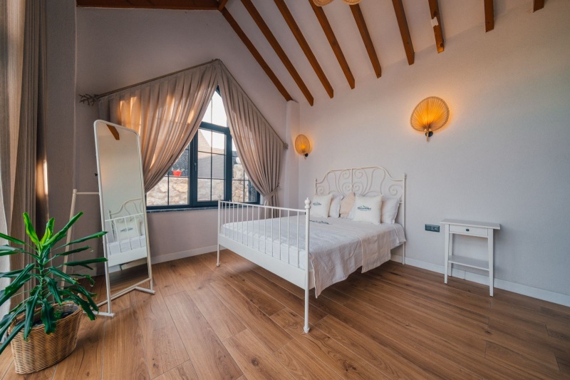 1. Yatak Odası (Üst Kat): 1 çift kişilik yatak, ebeveyn banyosu, perde, elbise askılığı bulunmaktadır.