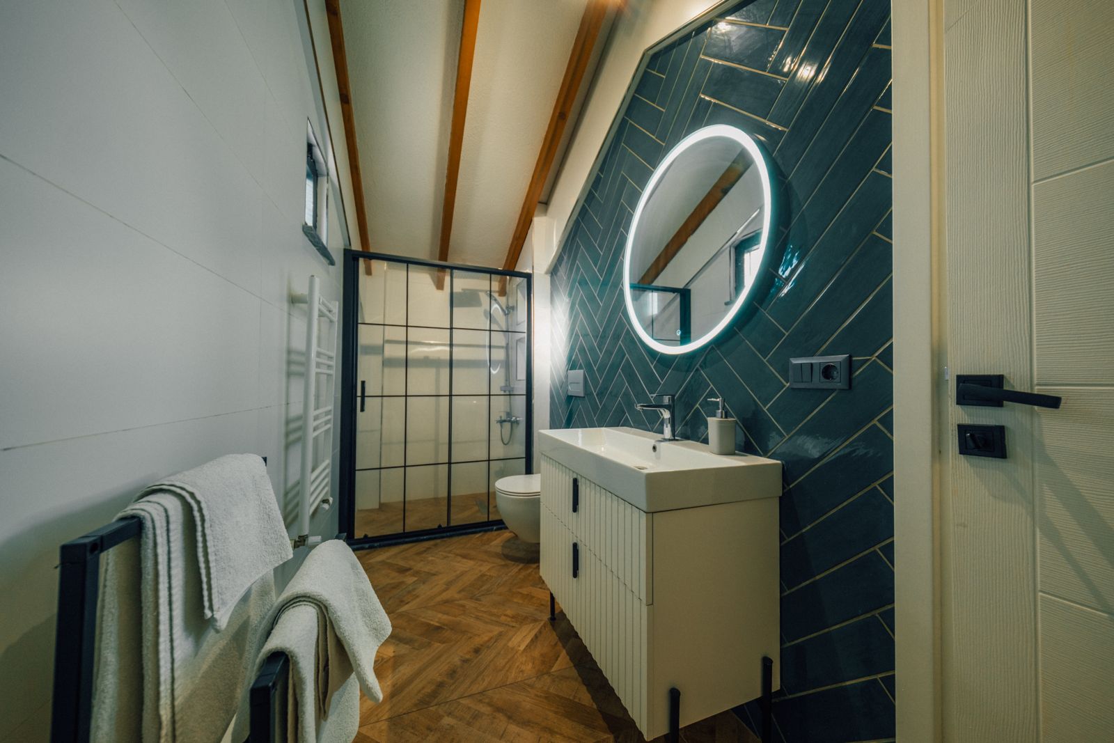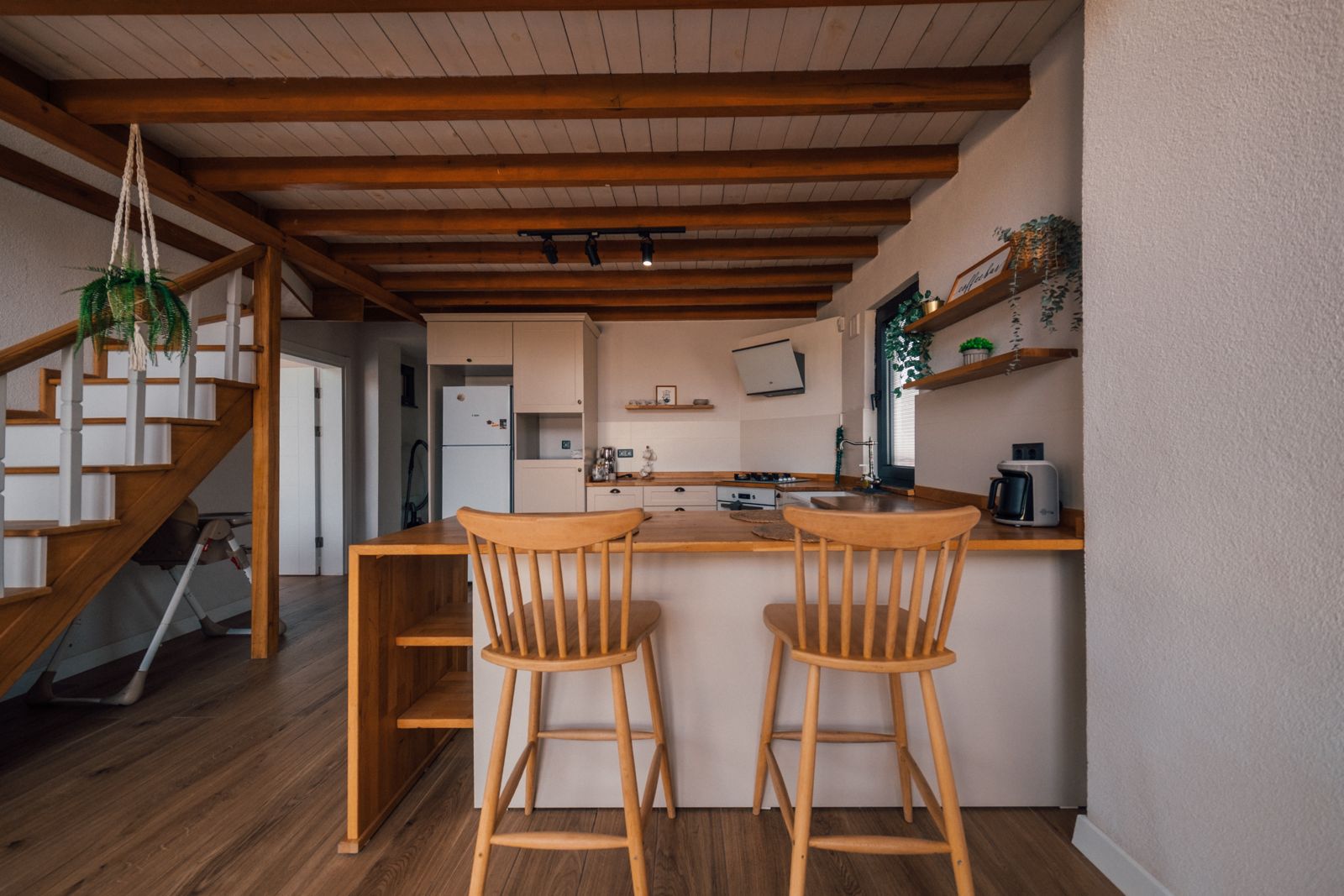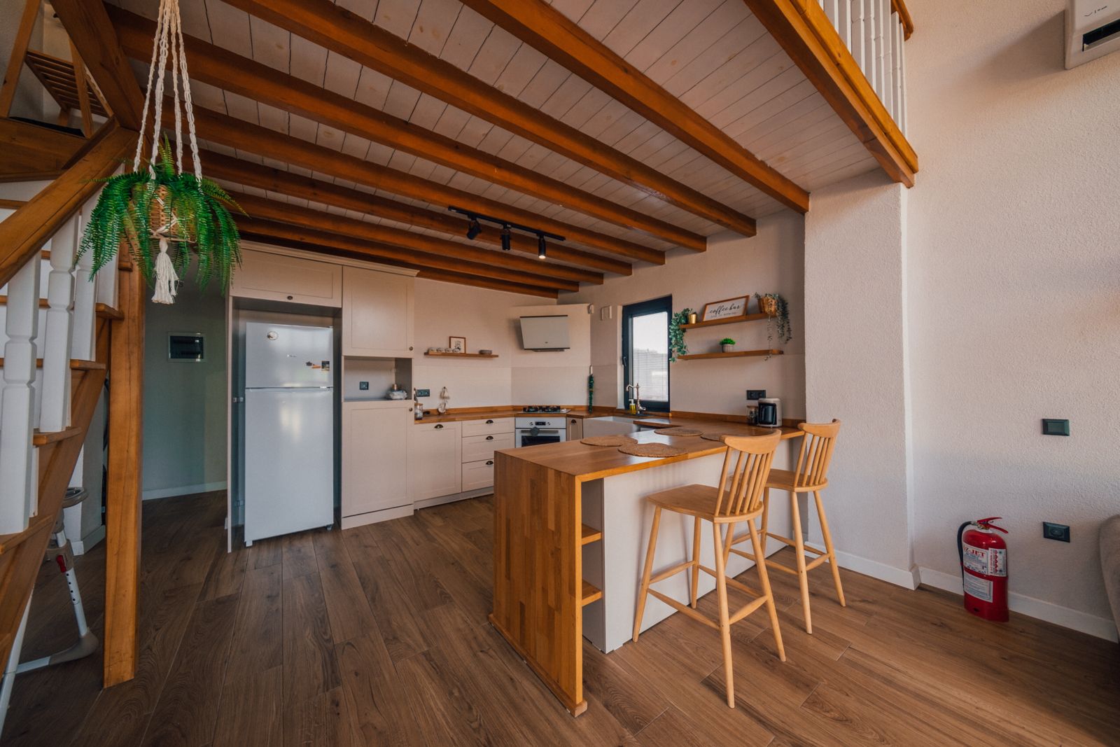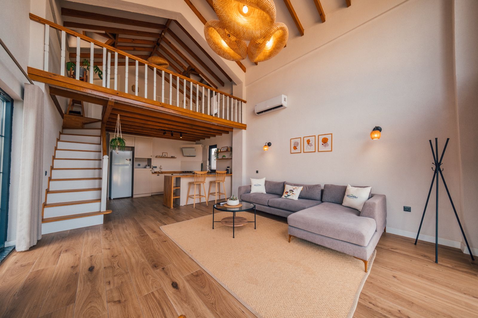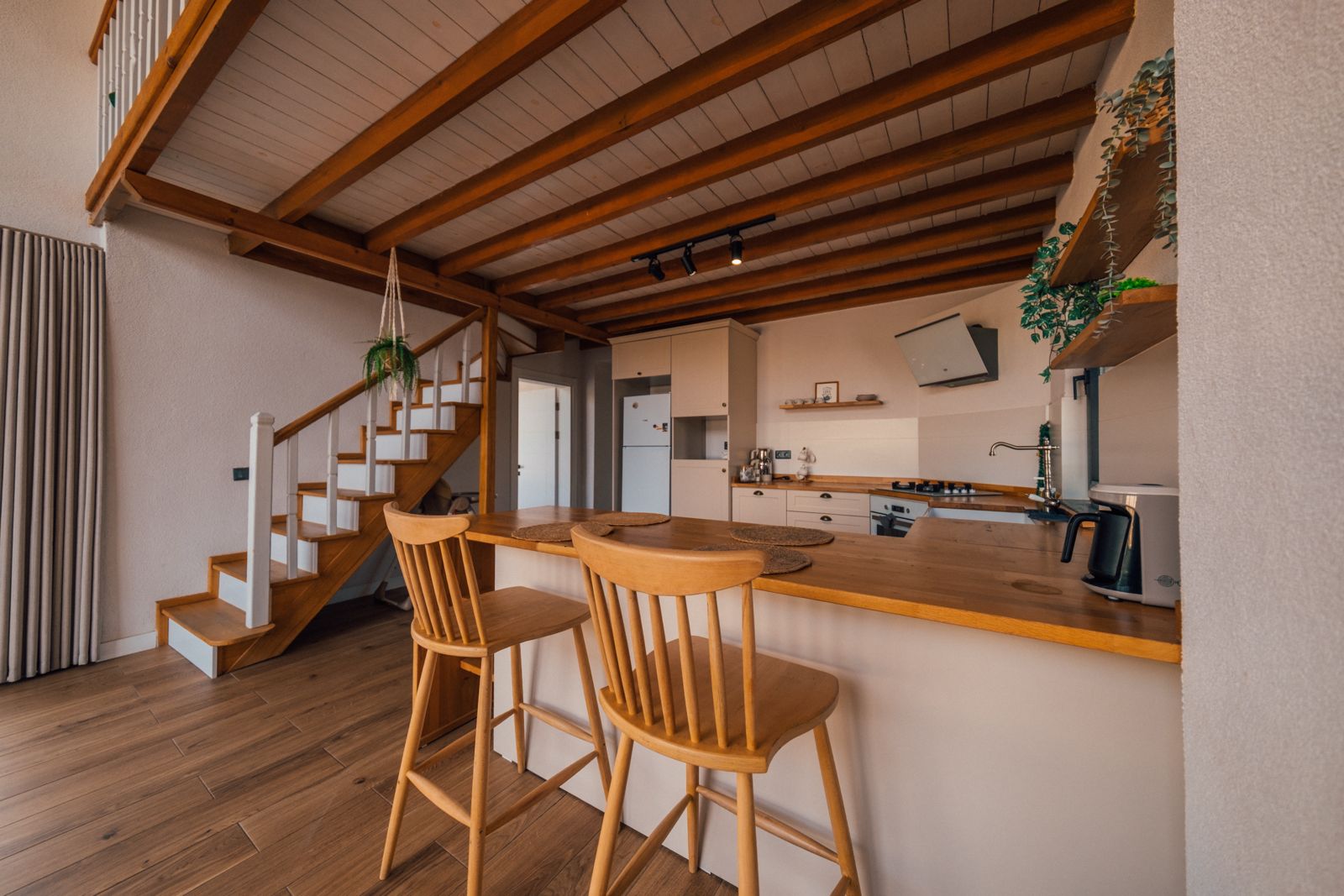 1. Yatak Odası (Üst Kat): 1 çift kişilik yatak, ebeveyn banyosu, perde, elbise askılığı bulunmaktadır.