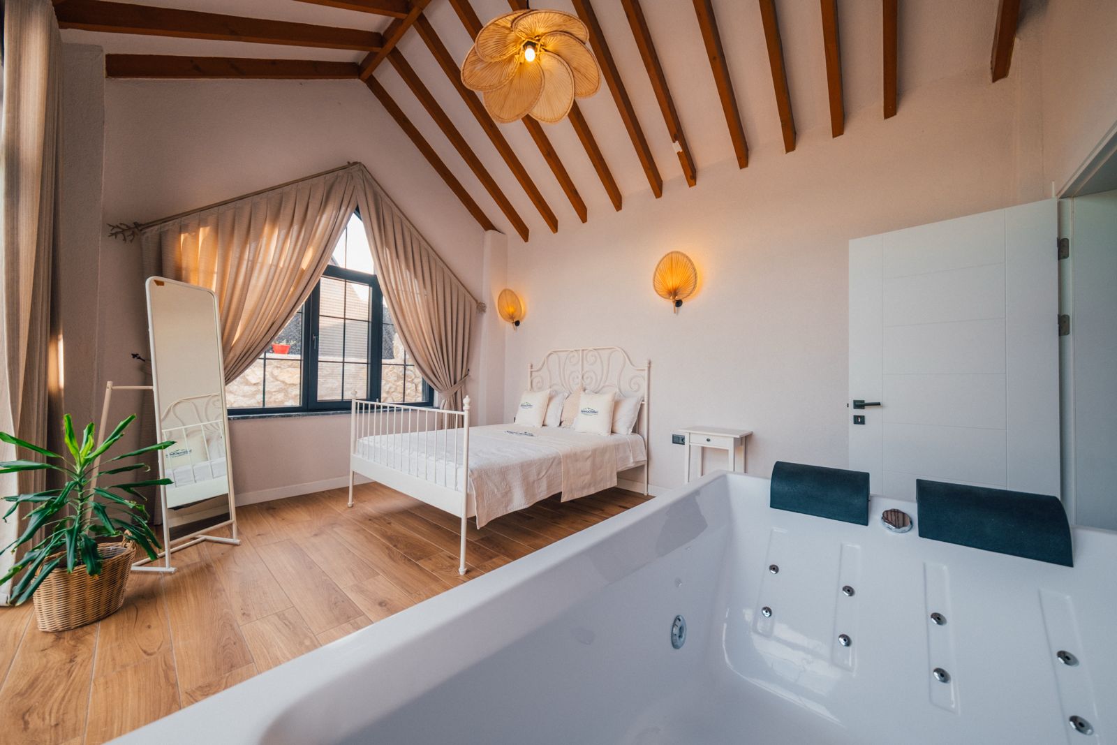 2. Yatak Odası (Alt Kat): 1 çift kişilik yatak, komodin, boy aynası, jakuzi, ebeveyn banyosu bulunmaktadır.