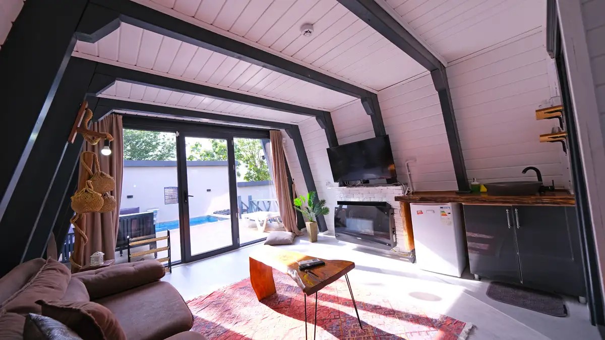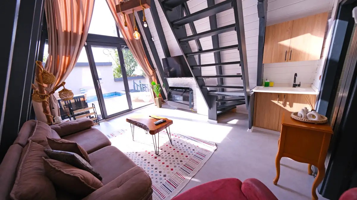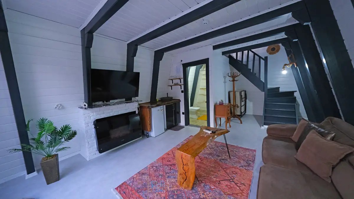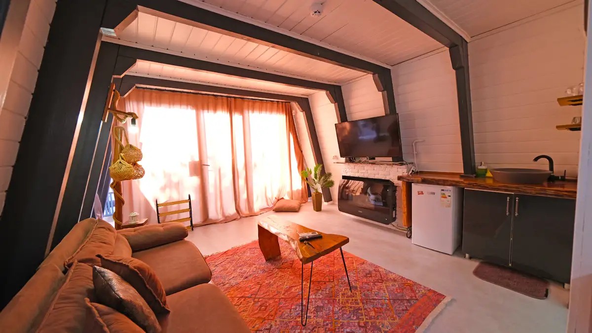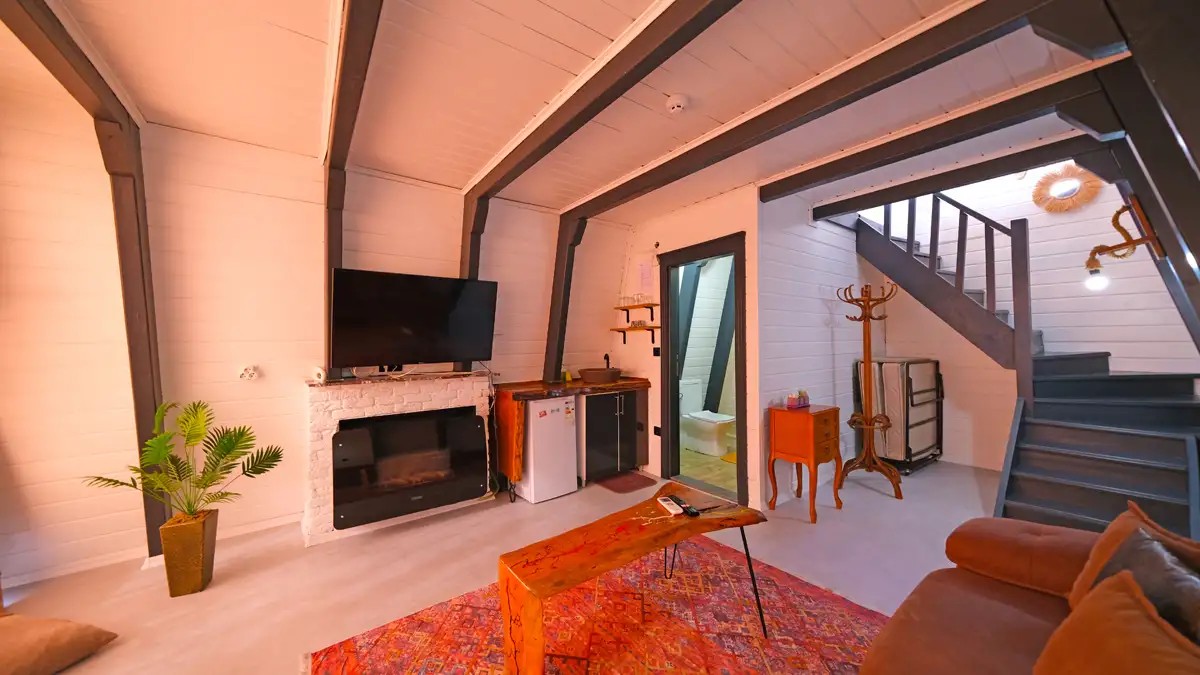 Salon : Rahat ve şık açılır bir koltuk , doğalgazlı şömine , TV ,klima ve Wc banyo bulunmaktadır.