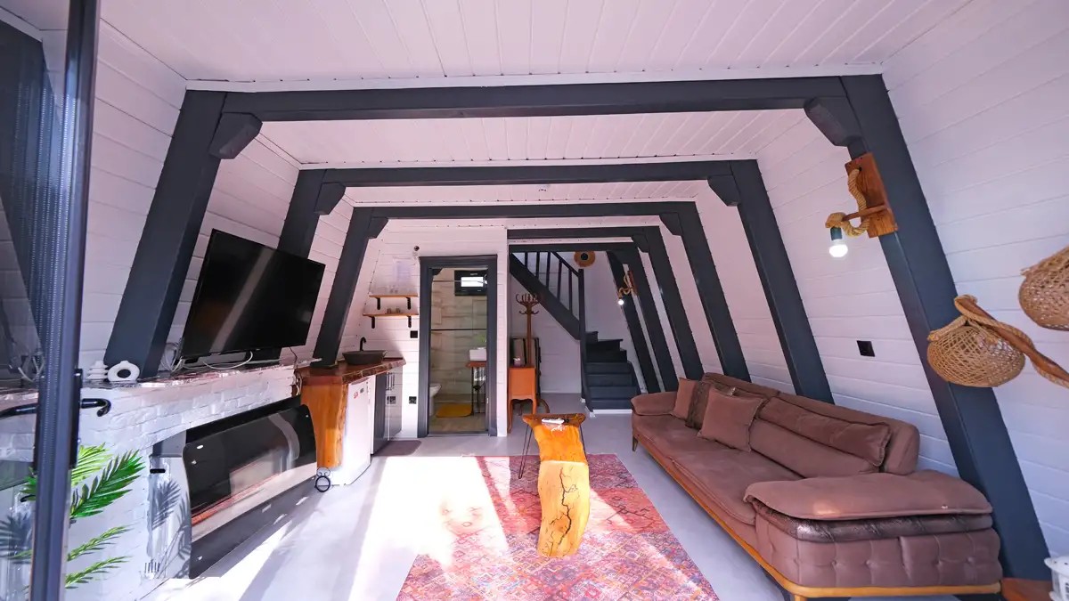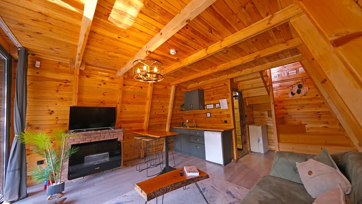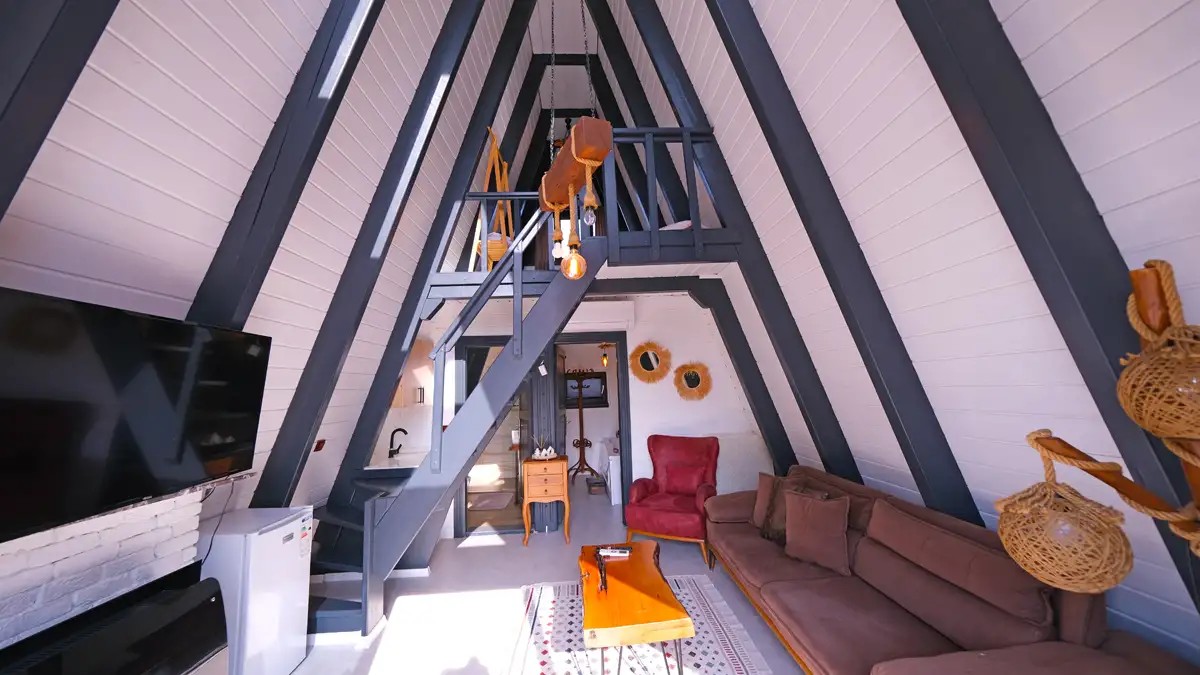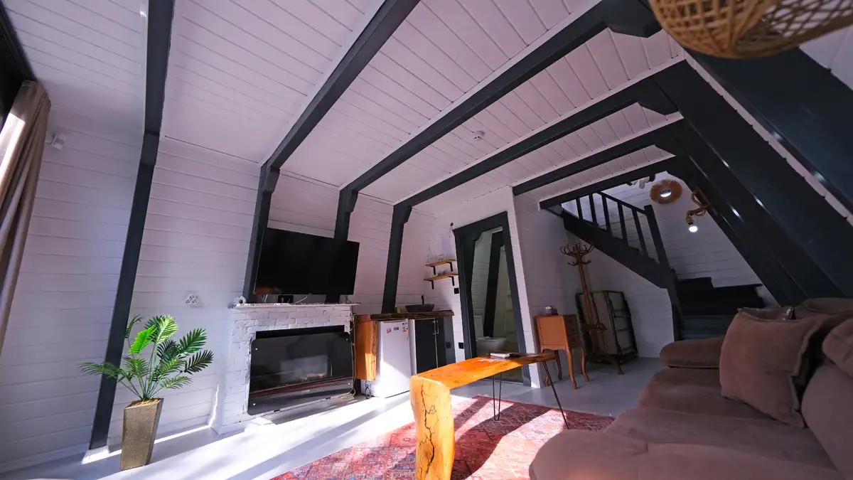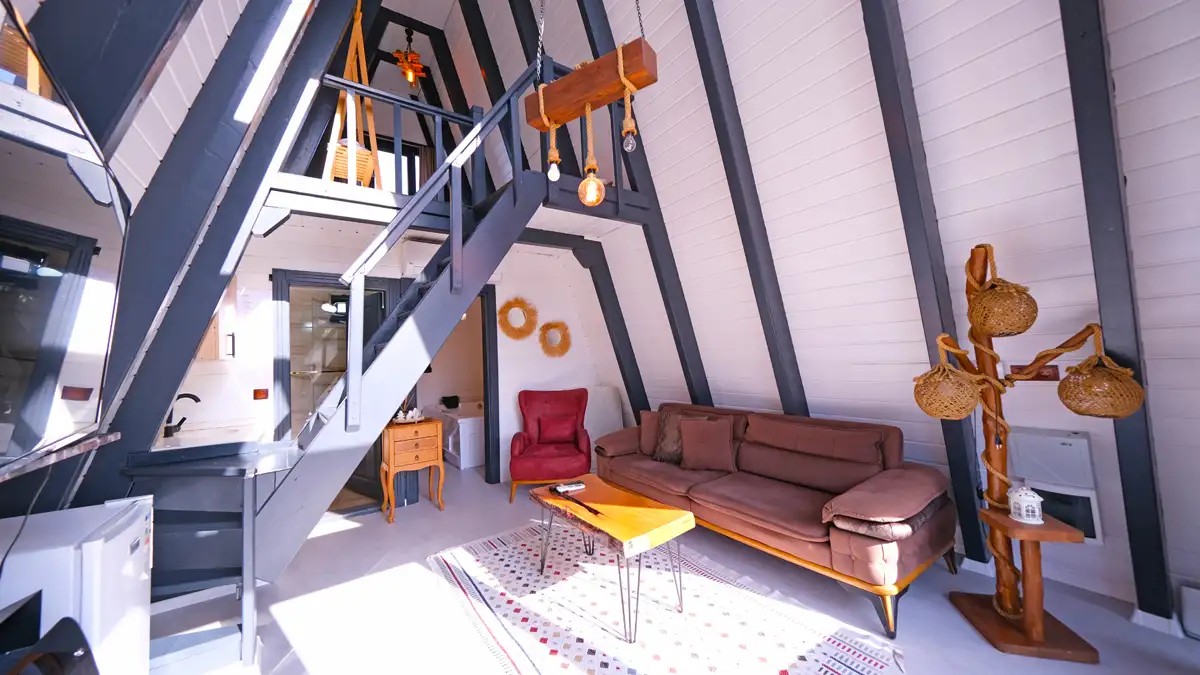 Salon : Rahat ve şık açılır bir koltuk , doğalgazlı şömine , TV ,klima ve Wc banyo bulunmaktadır.