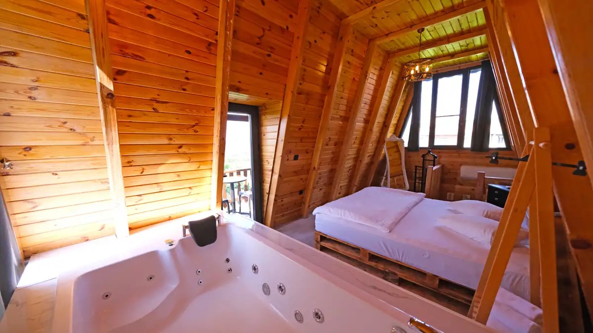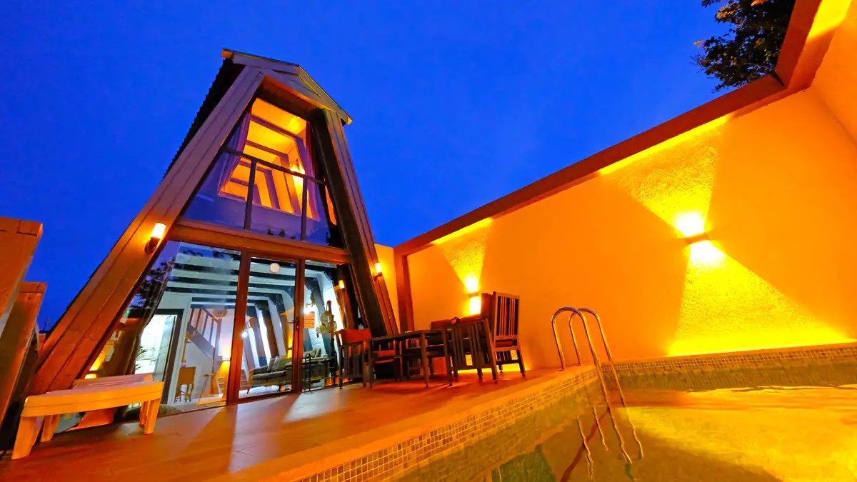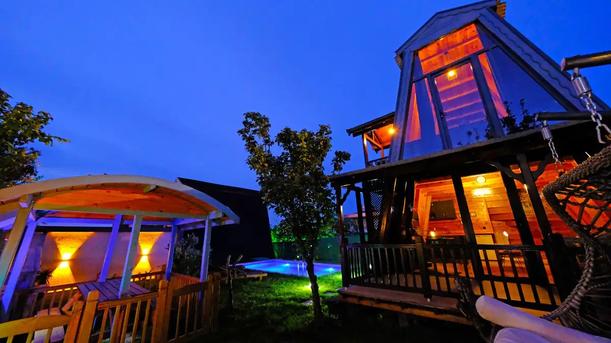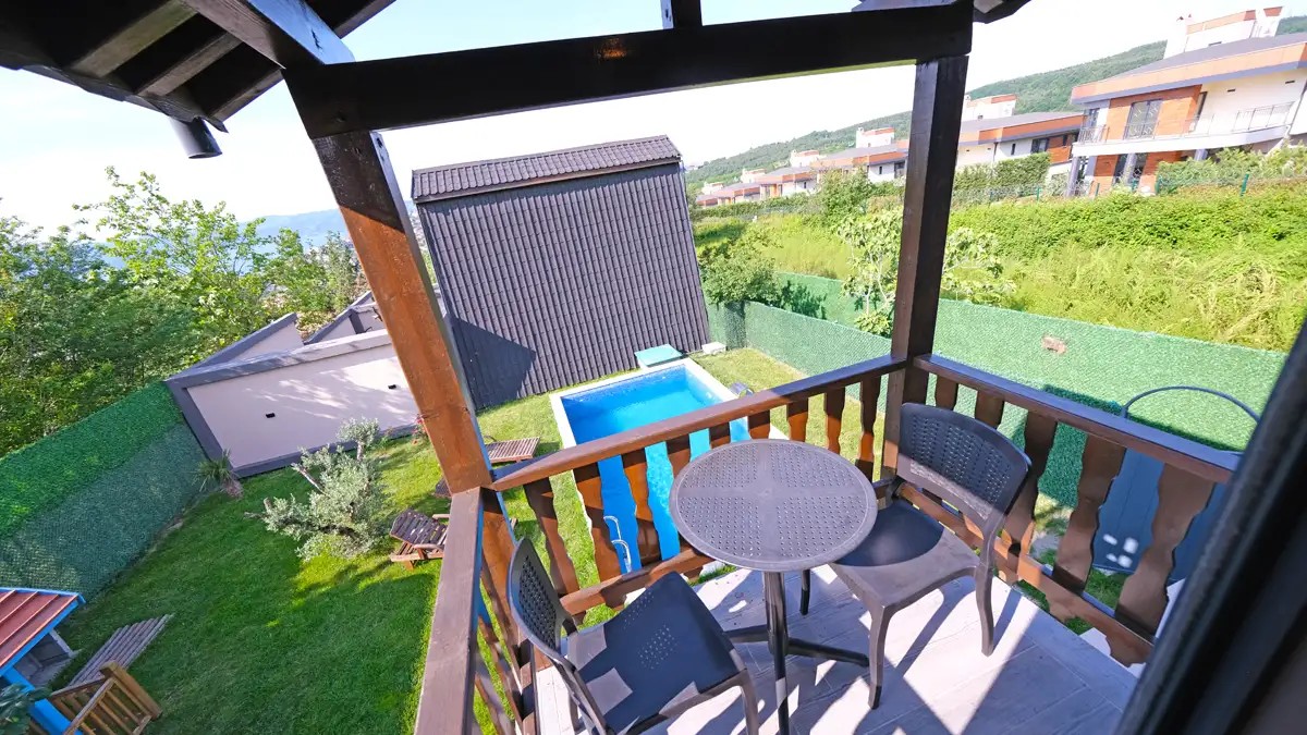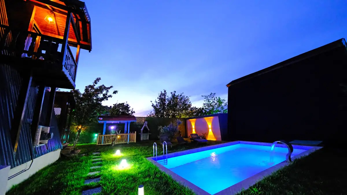 1 adet bulunmaktadır. Özel ısıtmalı havuzlu ve jakuzilidir. Max. 3 yetişkin konaklayabilmektedir.