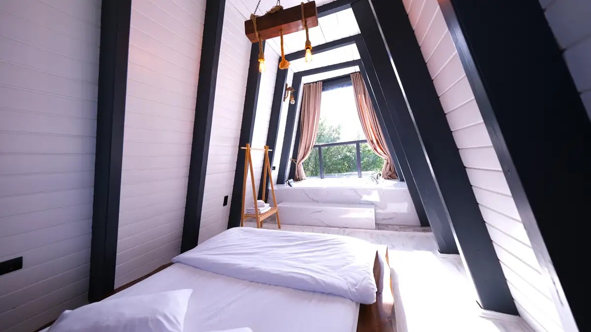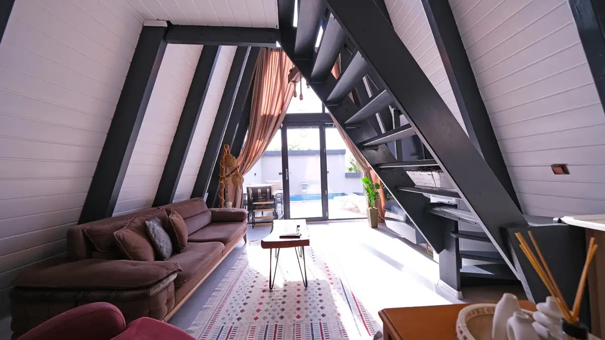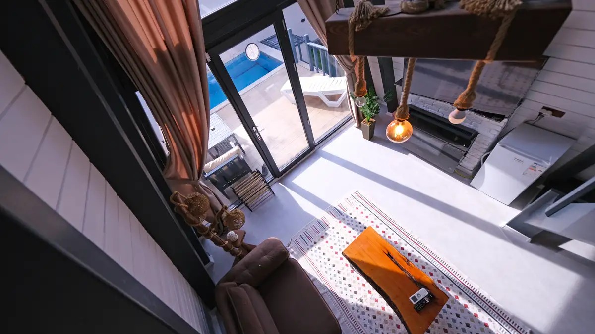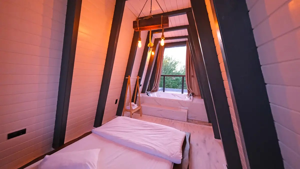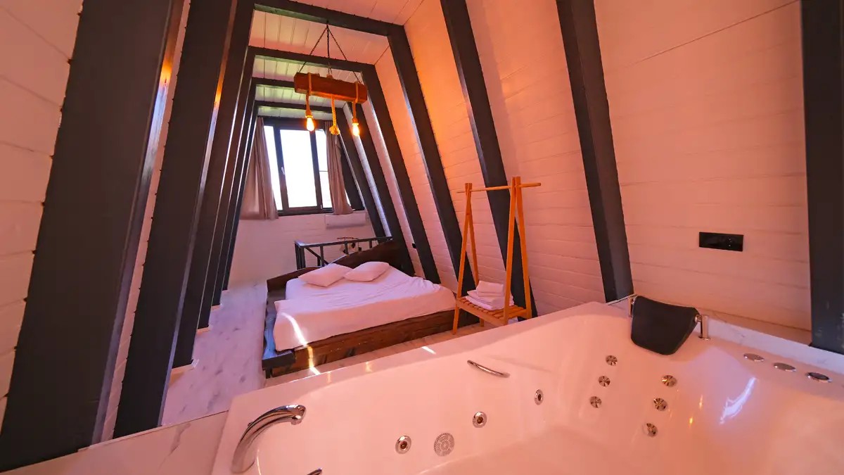 1.Yatak Odası (Asma kat) : Çift kişilik yatak ve jakuzi mevcuttur.