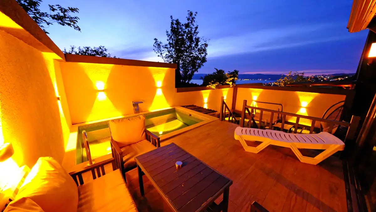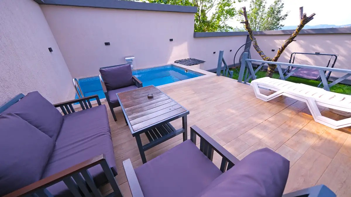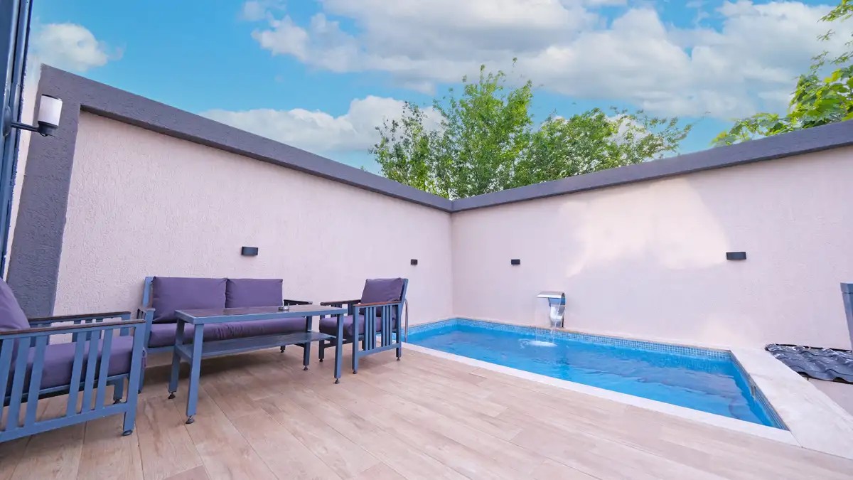 1 adet bulunmaktadır. Özel havuzlu (ısıtma ücretli açılabilmektedir ) ve jakuzilidir. Max. 3 yetişkin konaklayabilmektedir.
