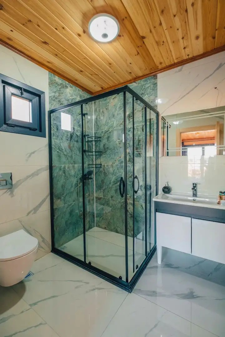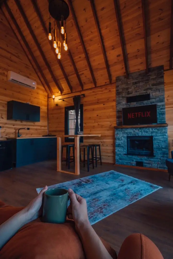 Salon : Açılmayan koltuk, oturma grubu, TV (netflix desteklemektedir.), klima, şömine soba, yemek masası, wc& banyo bulunmaktadır.