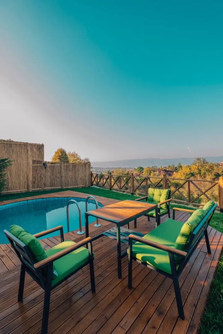 Bahçe : Isıtmalı Özel havuz, bahçe mobilyası, barbekü, verandada salıncak ve 2 adet sandalye bulunmaktadır.