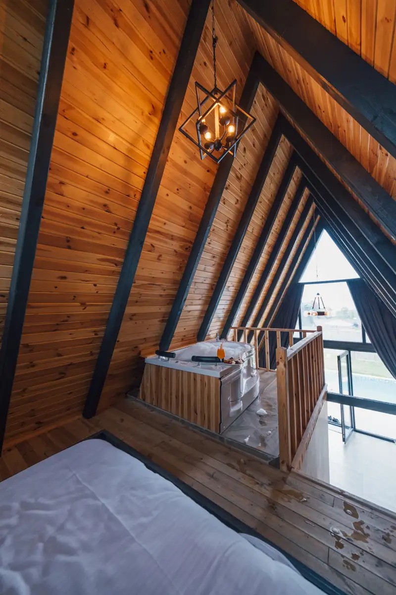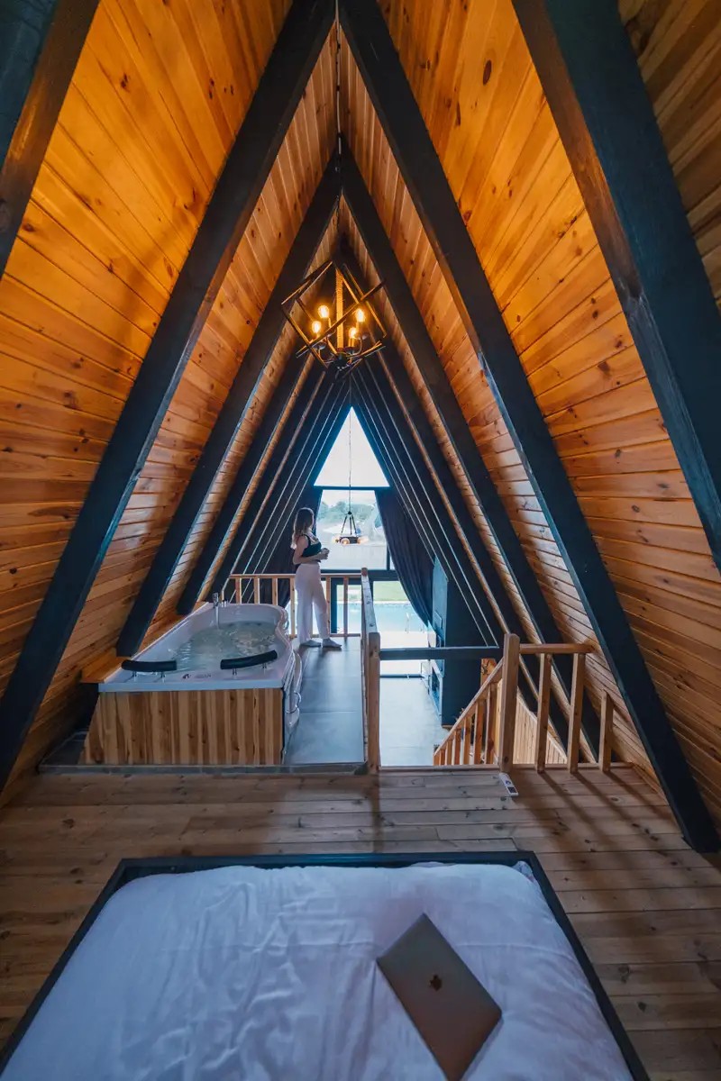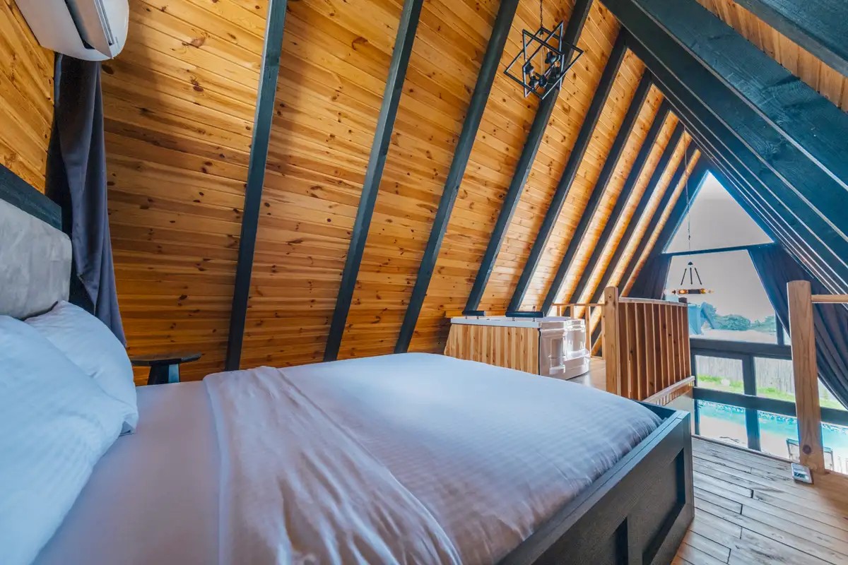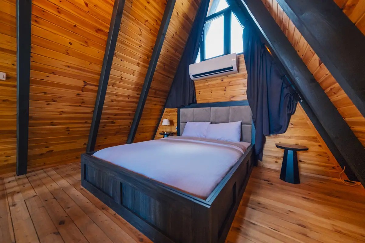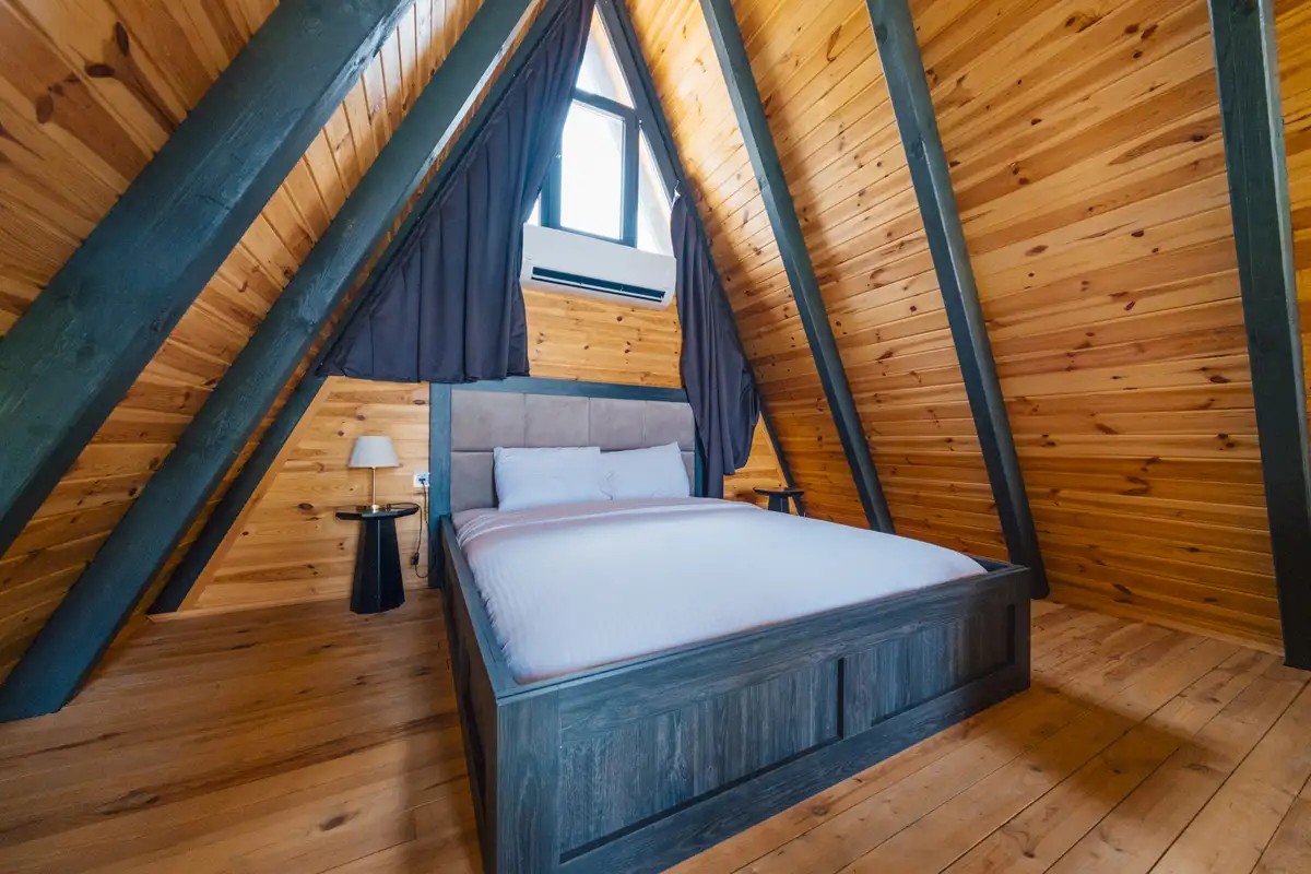1. Yatak Odası (Üst Kat): 1 çift kişilik yatak, jakuzi, klima bulunmaktadır