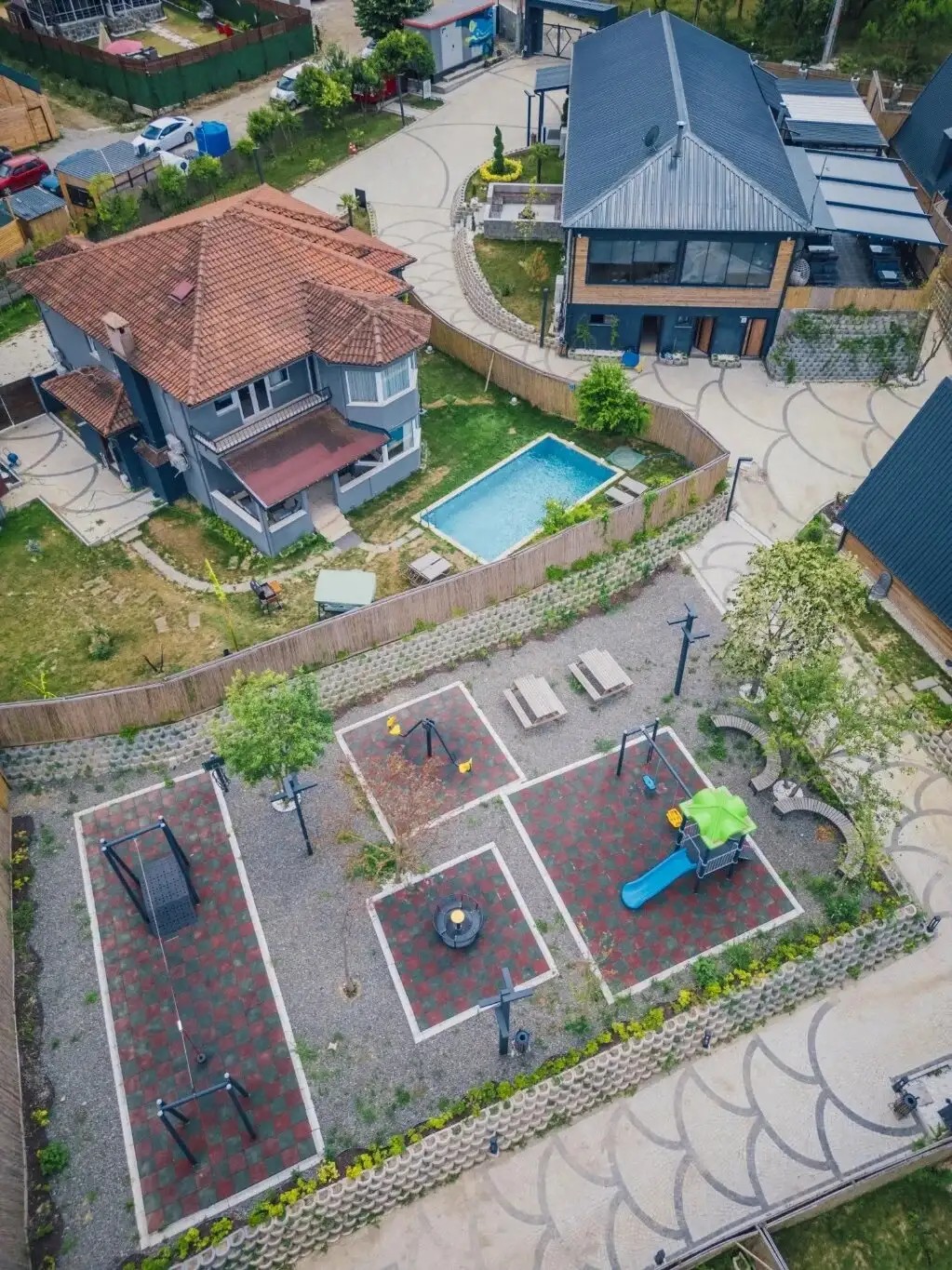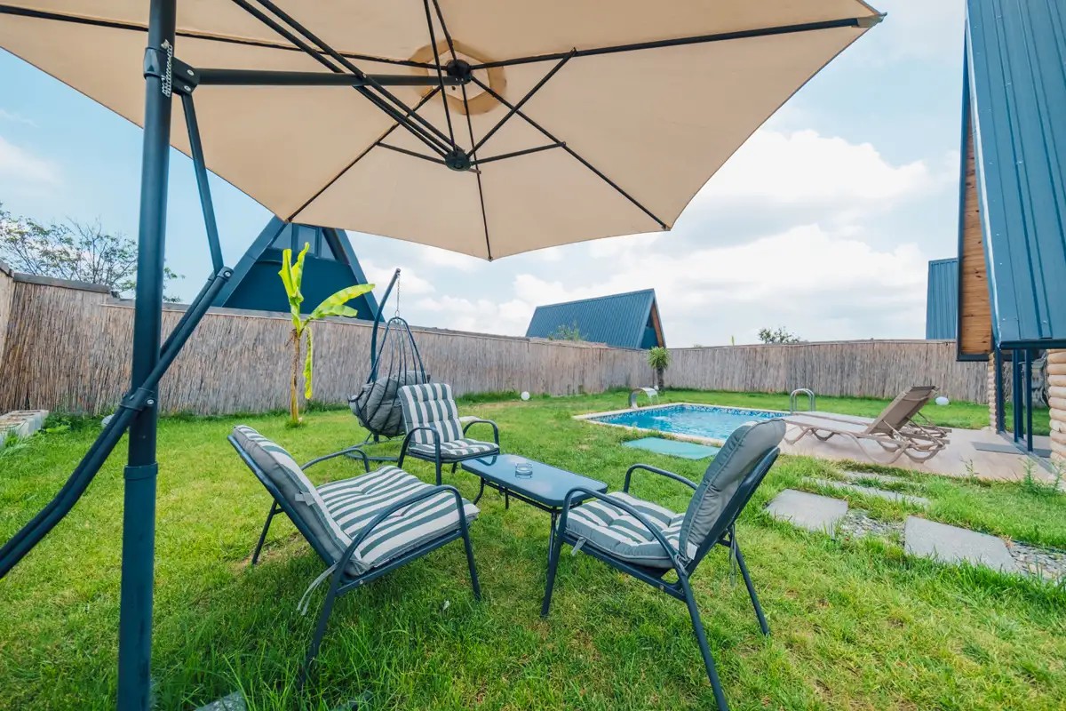 Bahçe: Özel ısıtmalı havuz (3m x 5m, derinlik 1,50m), şezlong, şemsiye, ateş kazanı, barbekü, bahçe mobilyaları, salıncak bulunmaktadır.