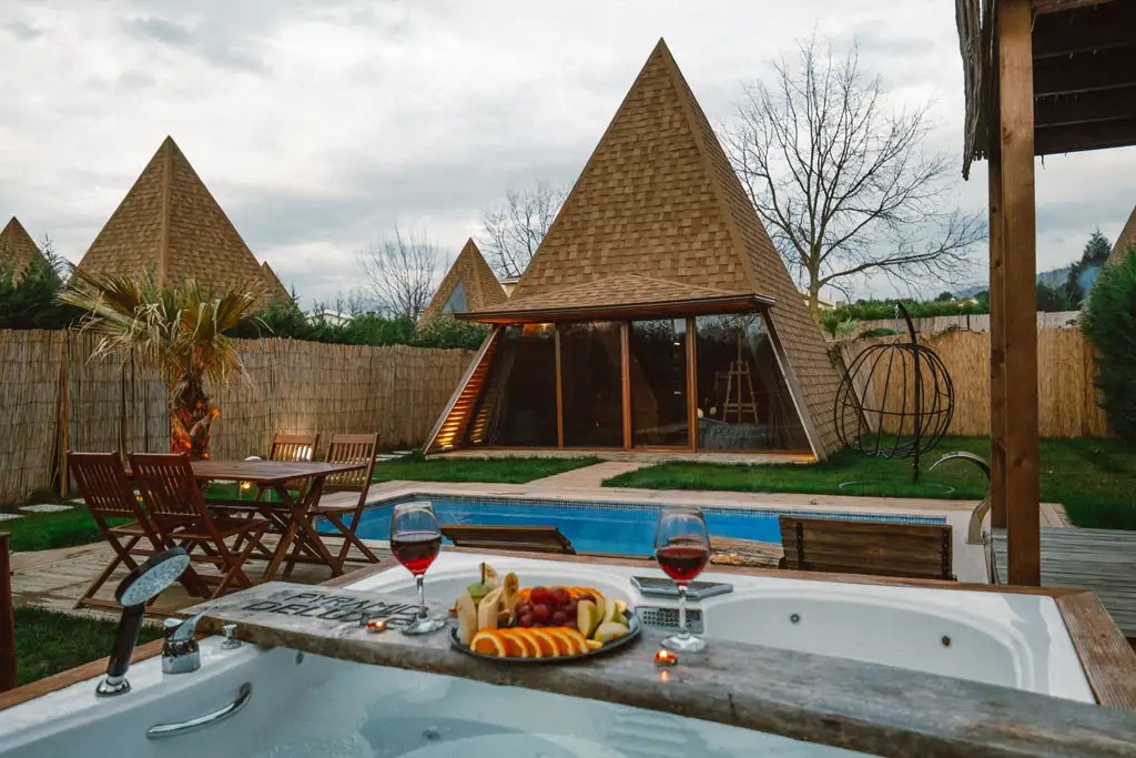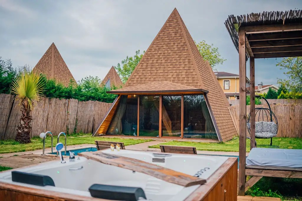 Pyramid bungalov evlerinde jakuzi keyfini de yaşamanız mümkün olmaktadır. Üçgen