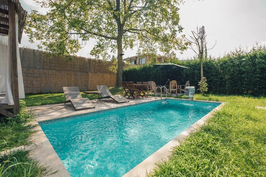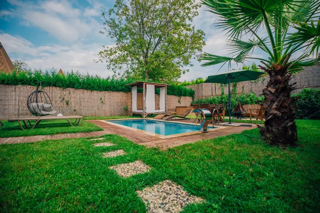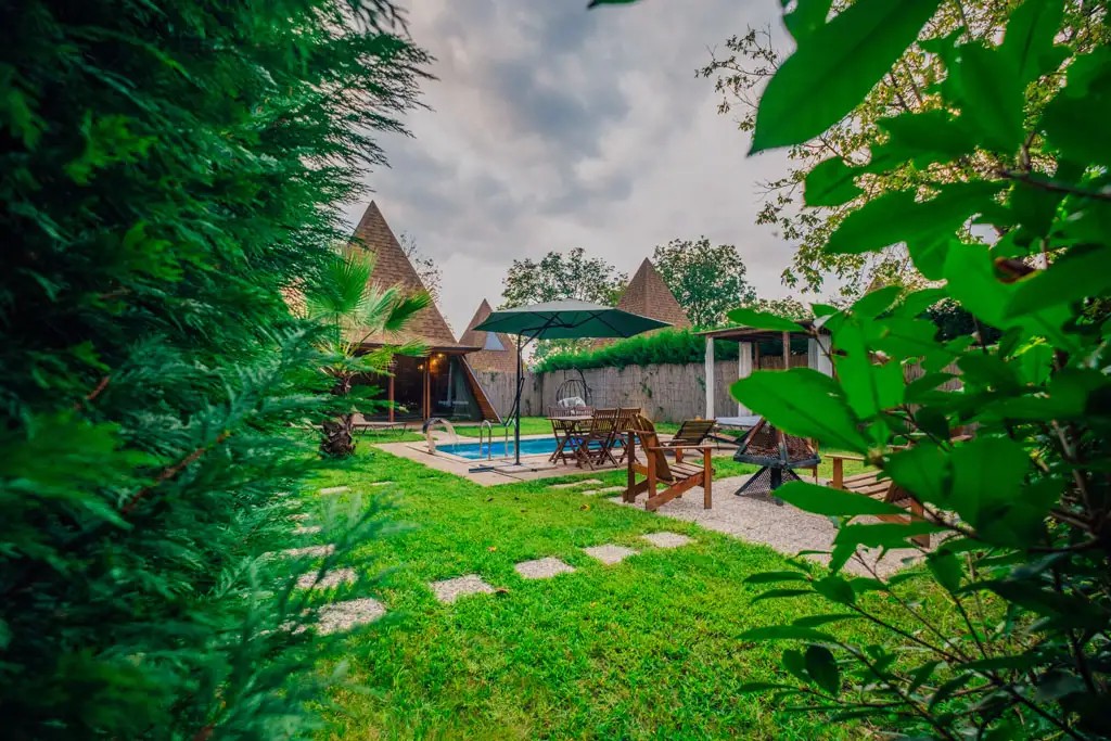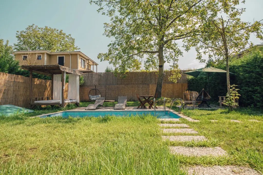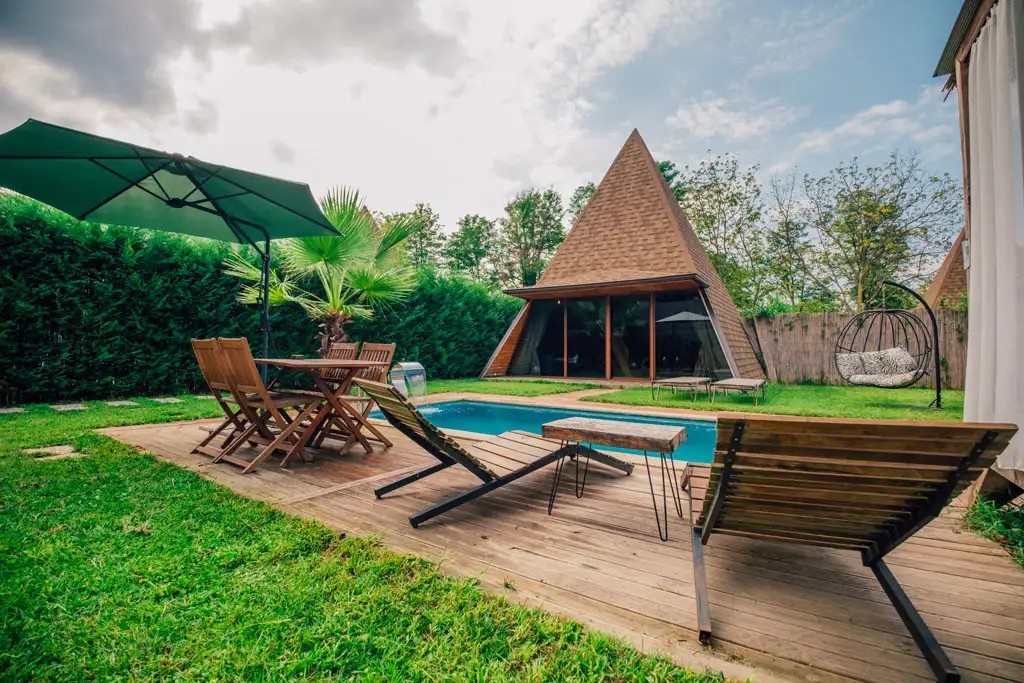 içinde bulunan Sapanca Pyramid bungalov evleri kendisine ait bahçe ve havuza da