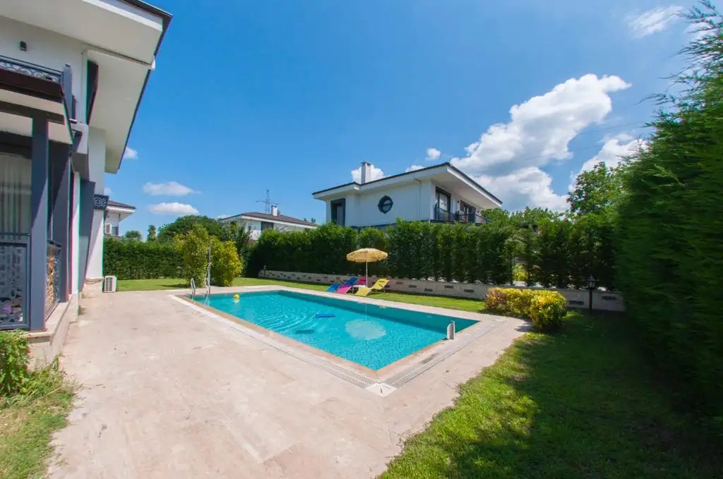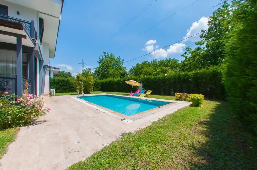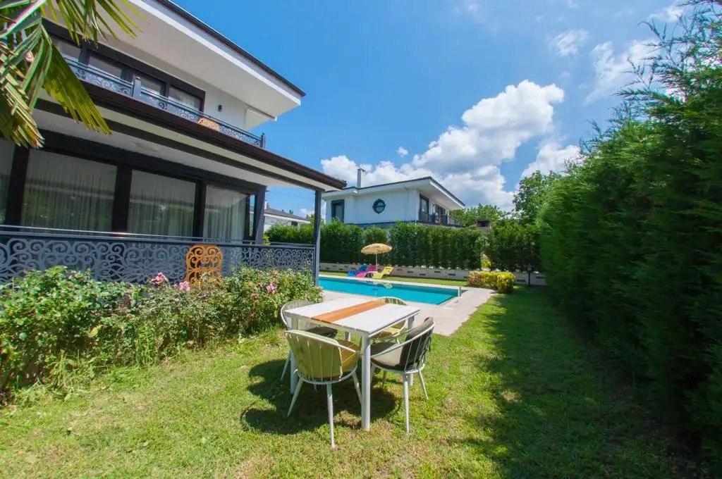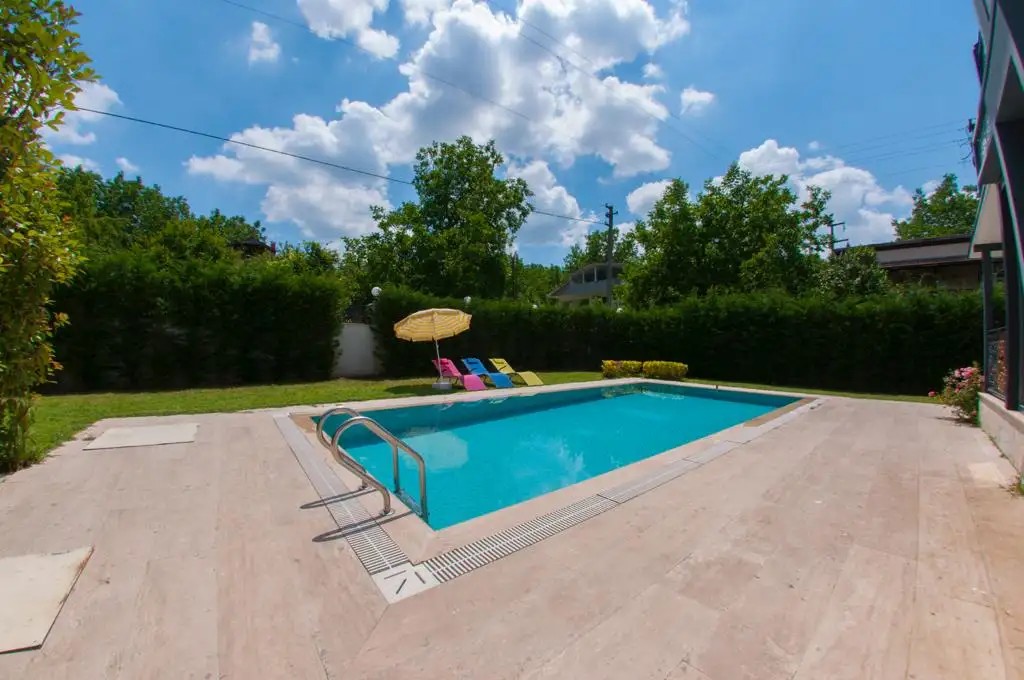 Bahçe : Özel yüzme havuzu, şezlong, şemsiye, barbekü bulunmaktadır.