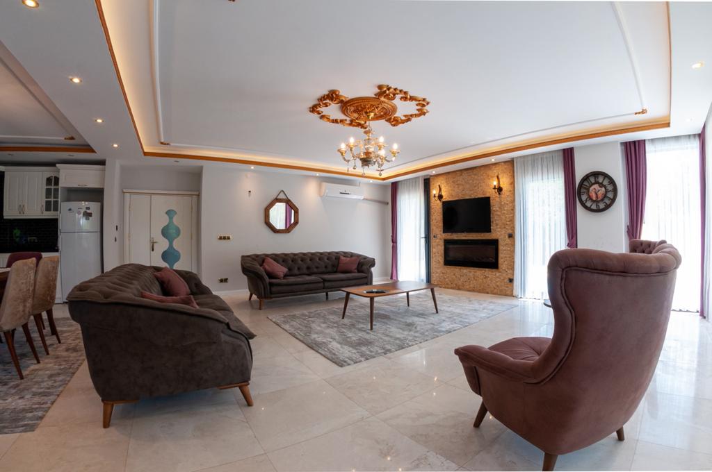 Salon : Rahat ve şık oturma grubu, tv, elektrikli şömine, klima bulunmaktadır.