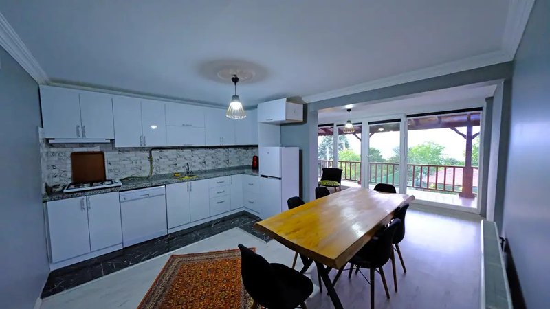 1. Mutfak: (Üst Kat) tam donanımlıdır. Çamaşır makinesi, bulaşık makinesi bulunmaktadır.