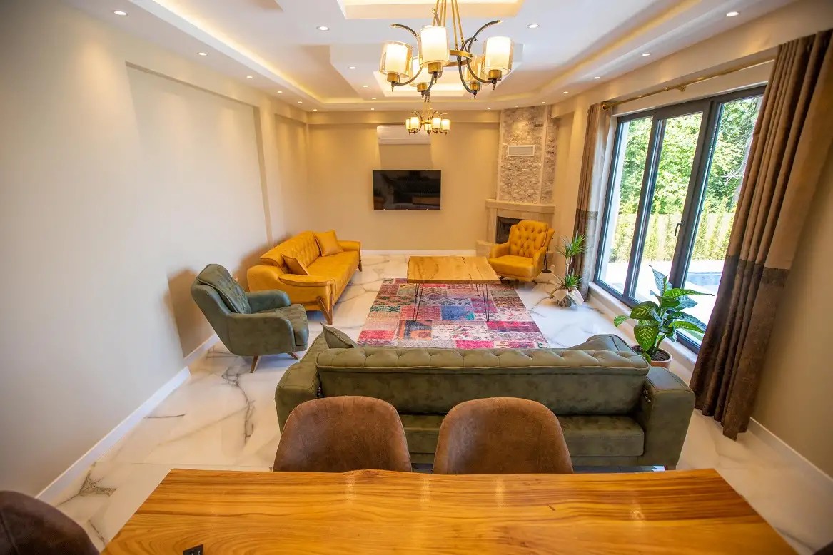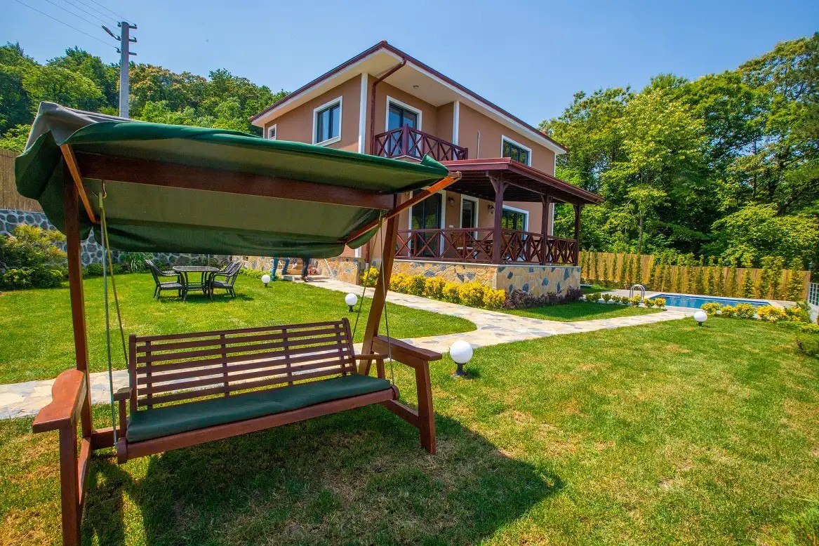 Sapanca merkeze 2 km uzaklıkta bulunmaktadır. Konforlu ve kaliteli ev dekorasyon eşyalarıyla zevkle döşenmiştir. Villa bahçesinde müstakil korunaklı özel yüzme havuzu, güneşlenme alanı, özel otopark, bahçe mobilyası ve bahçe keyfini çıkaracağınız salıncak bulunmaktadır. Misafirlerin eğlenceli vakit geçirmesi için tüm detaylar en ince ayrıntılarına kadar düşünülerek, konuklarının hizmetine sunulmuştur. 12 ay konaklama yapılacak şekilde planlanan villamızda kış ayları için ısınmada alternatif olarak şömine bulunmaktadır. Hayalinizdeki tatili yaşamanız için özel olarak tasarlanan bu villada konaklarken her şeyin hayal ettiğiniz gibi olduğunu göreceksiniz. Doğanın dinlendirici etkisiyle huzur bulurken Sapanca'nın eşsiz manzarasına karşı ailece keyifli zaman geçireceksiniz.