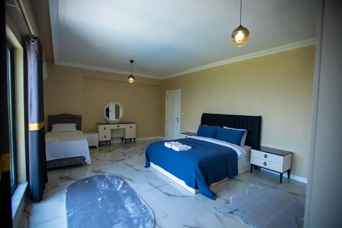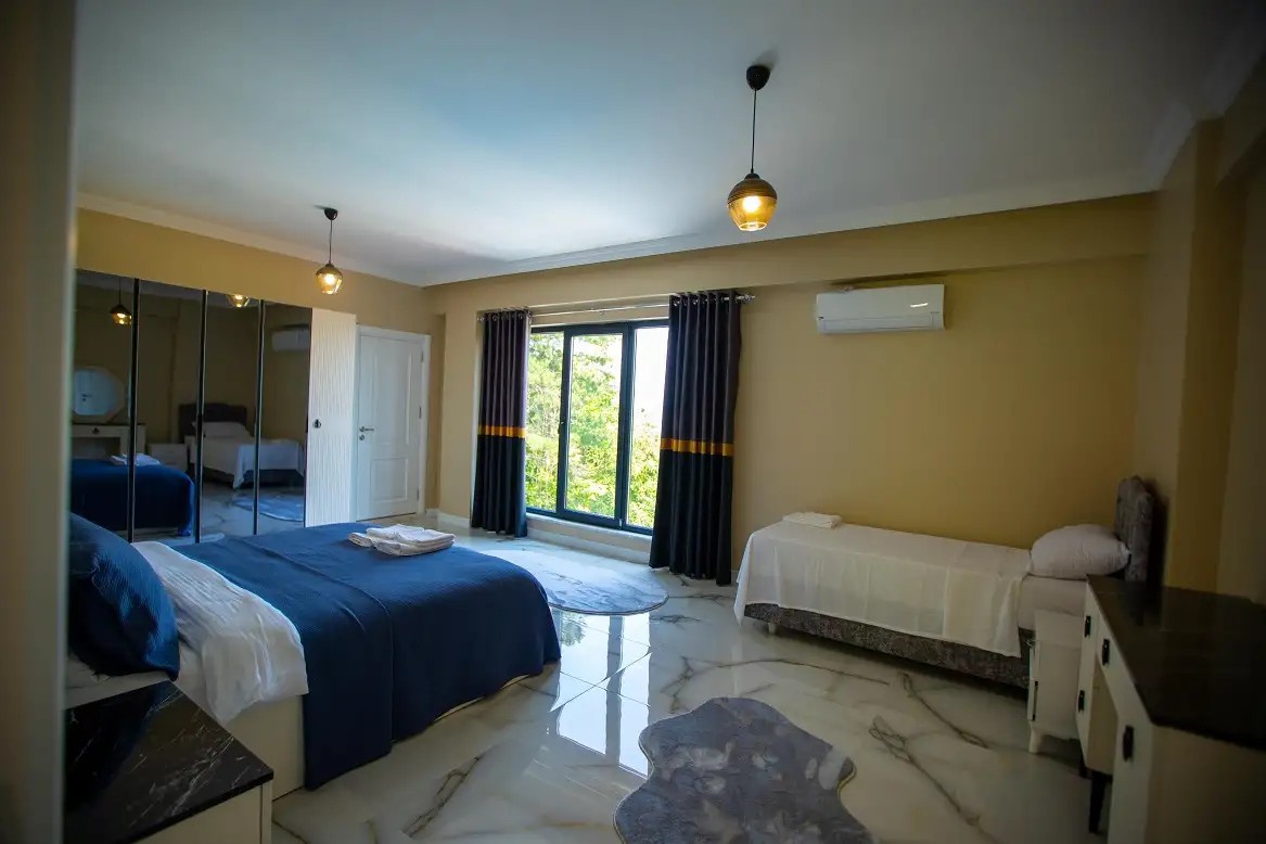 1.Yatak Odası : Çift kişilik yatak, Tek kişilik yatak, komodin, elbise dolabı, klima, banyo &WC.