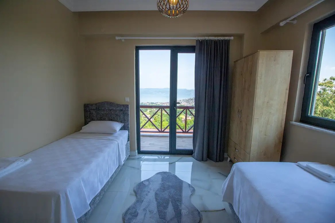 3.Yatak Odası : 2 Adet tek kişilik yatak, komodin, elbise dolabı, klima, Balkon