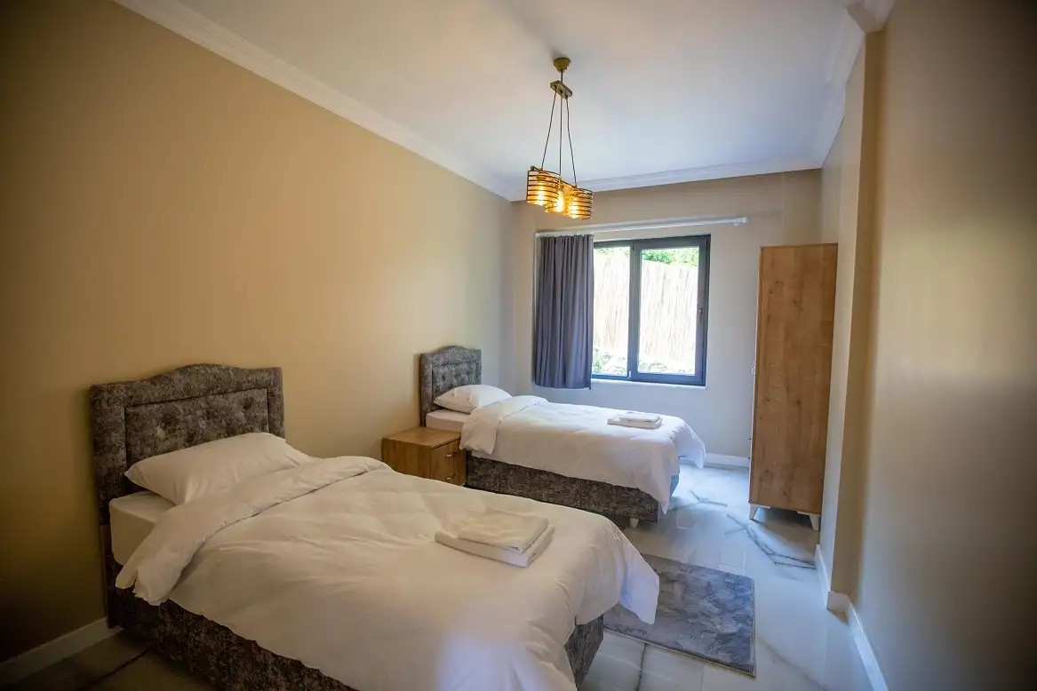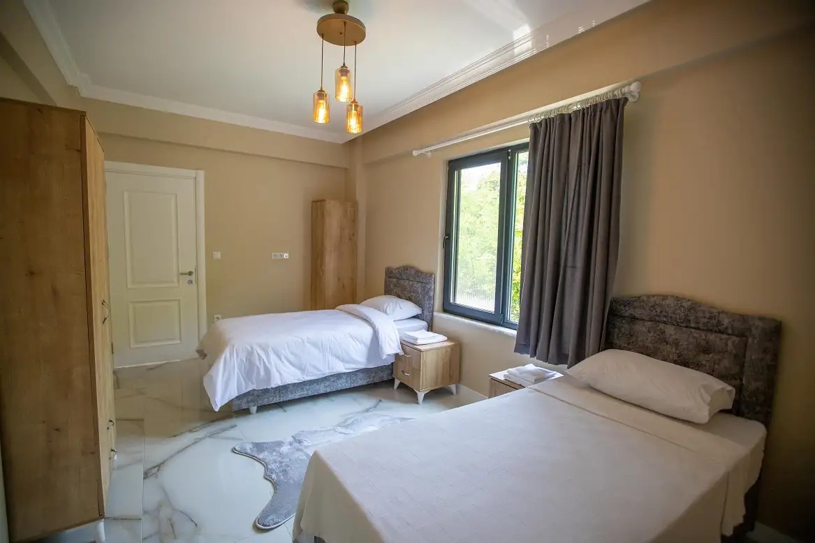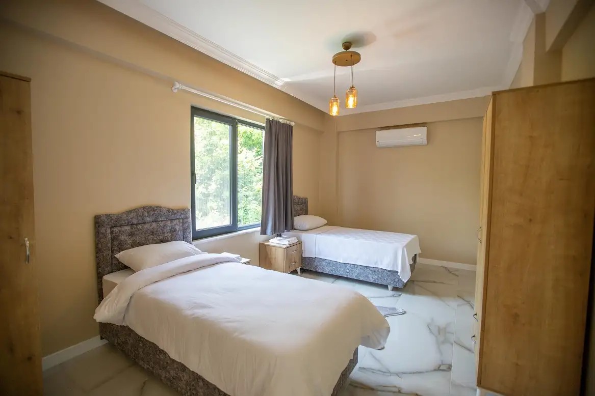 2.Yatak Odası : İki adet tek kişilik yatak, komodin, elbise dolabı, klima, banyo &WC.