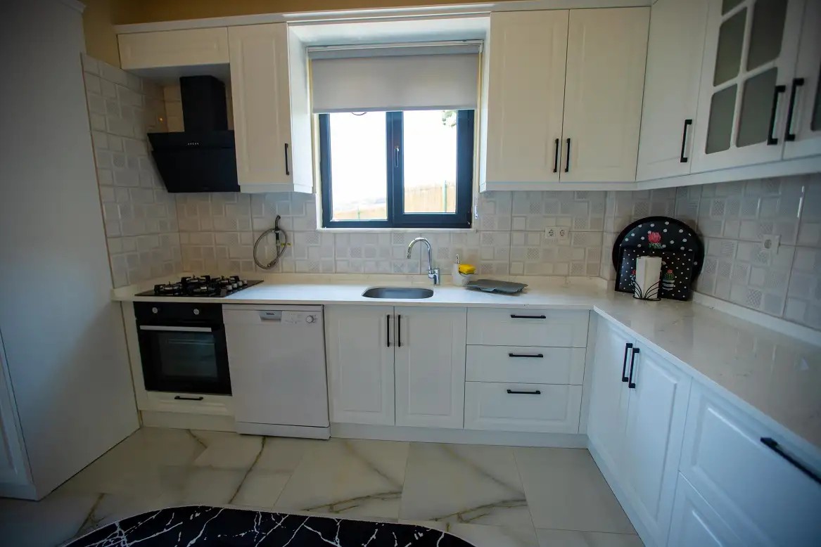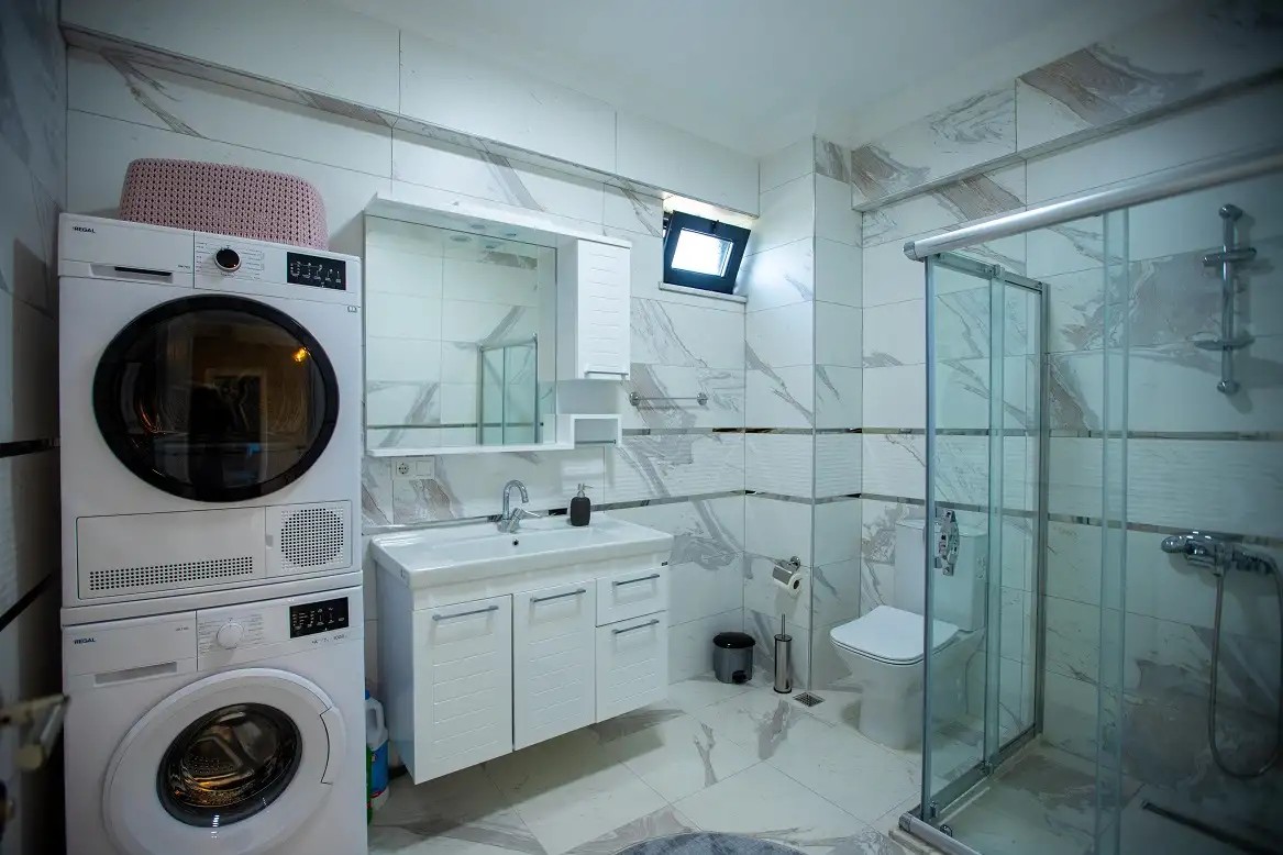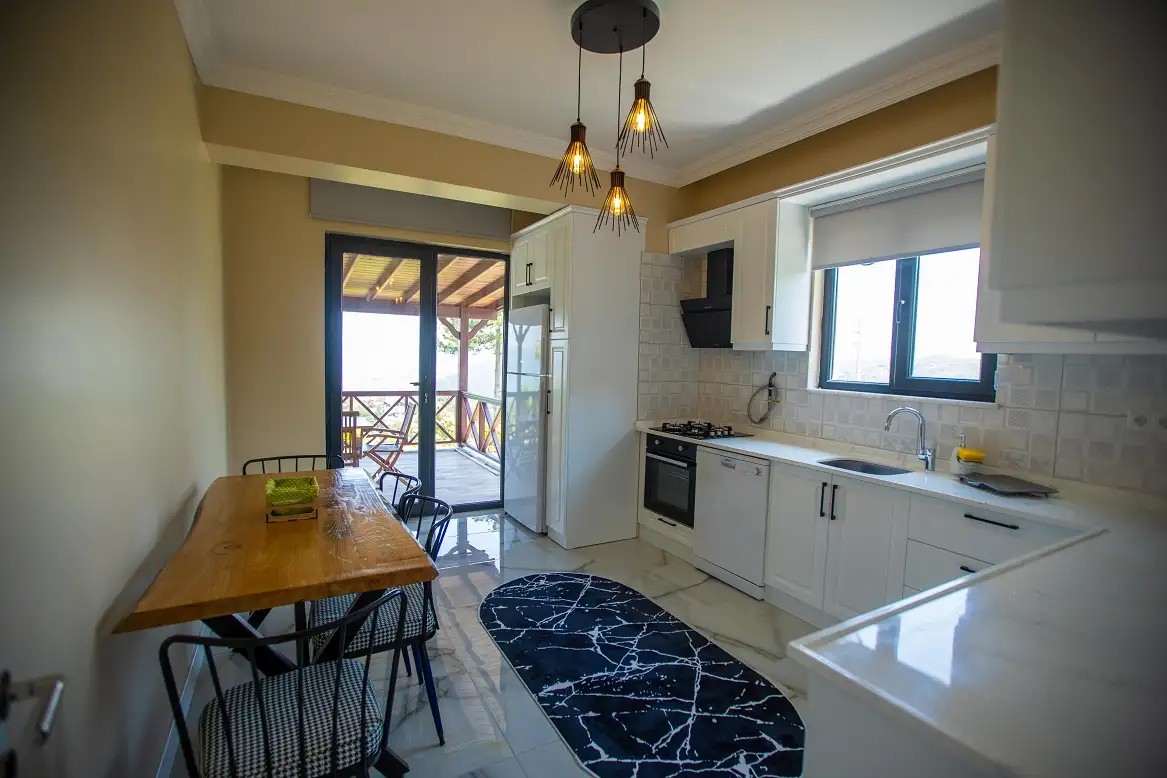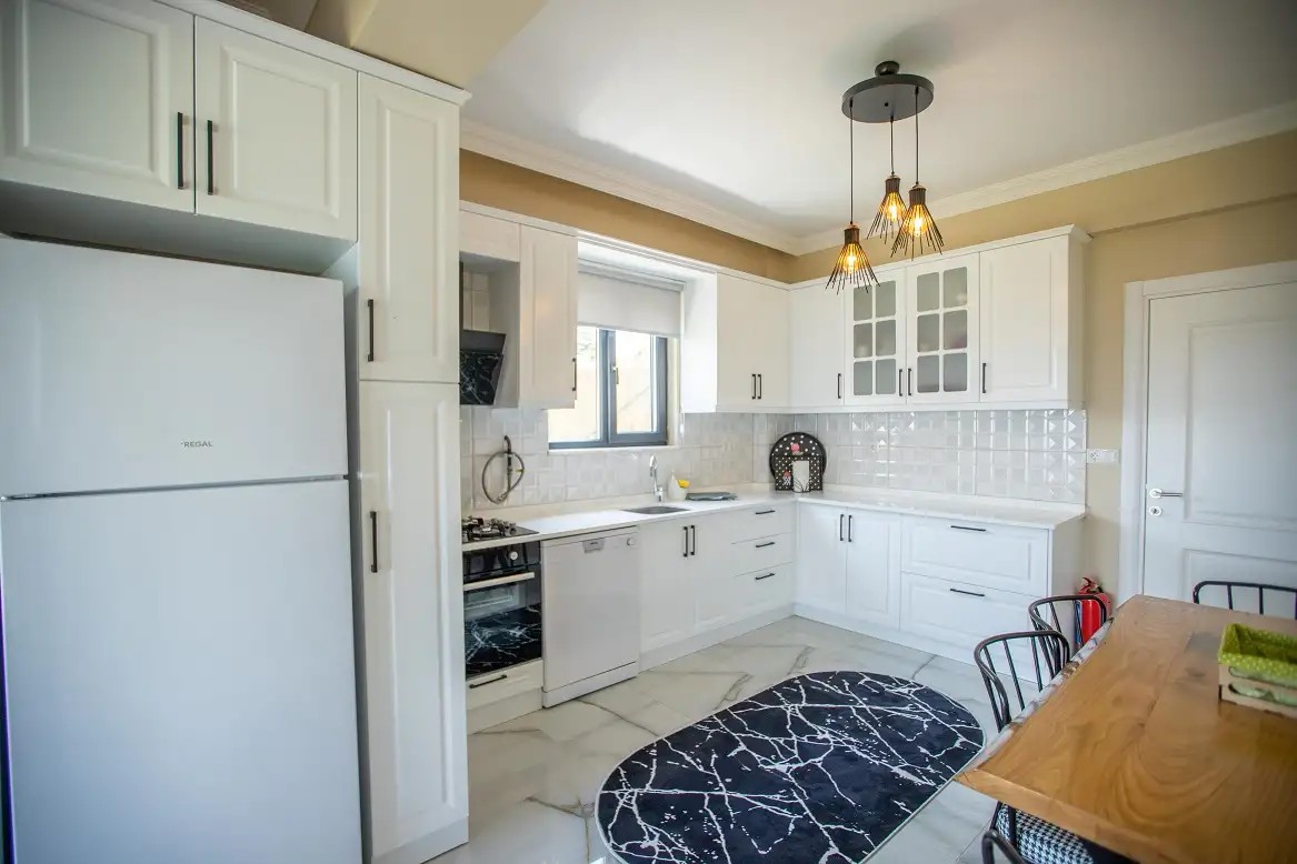 Mutfak : Buzdolabı, çamaşır makinesi, kurutma makinesi, bulaşık makinesi, ocak, ankastre fırın, mikrodalga fırın, kettle, yemek masa sandalye takımı, tencere, tabak, bardak, çatak bıçak seti vb. ekipman mevcuttur.