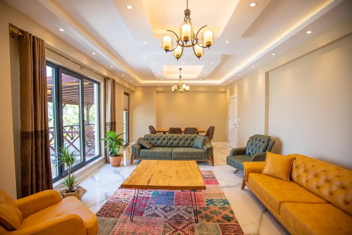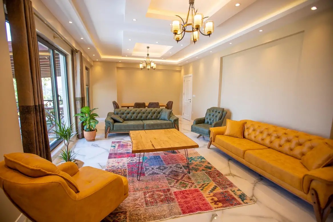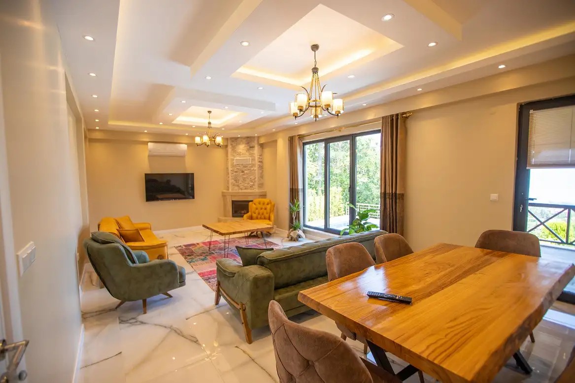 Salon : Rahat ve şık oturma grubu, yemek masası, LCD TV, klima uydu sistemi bulunmaktadır.