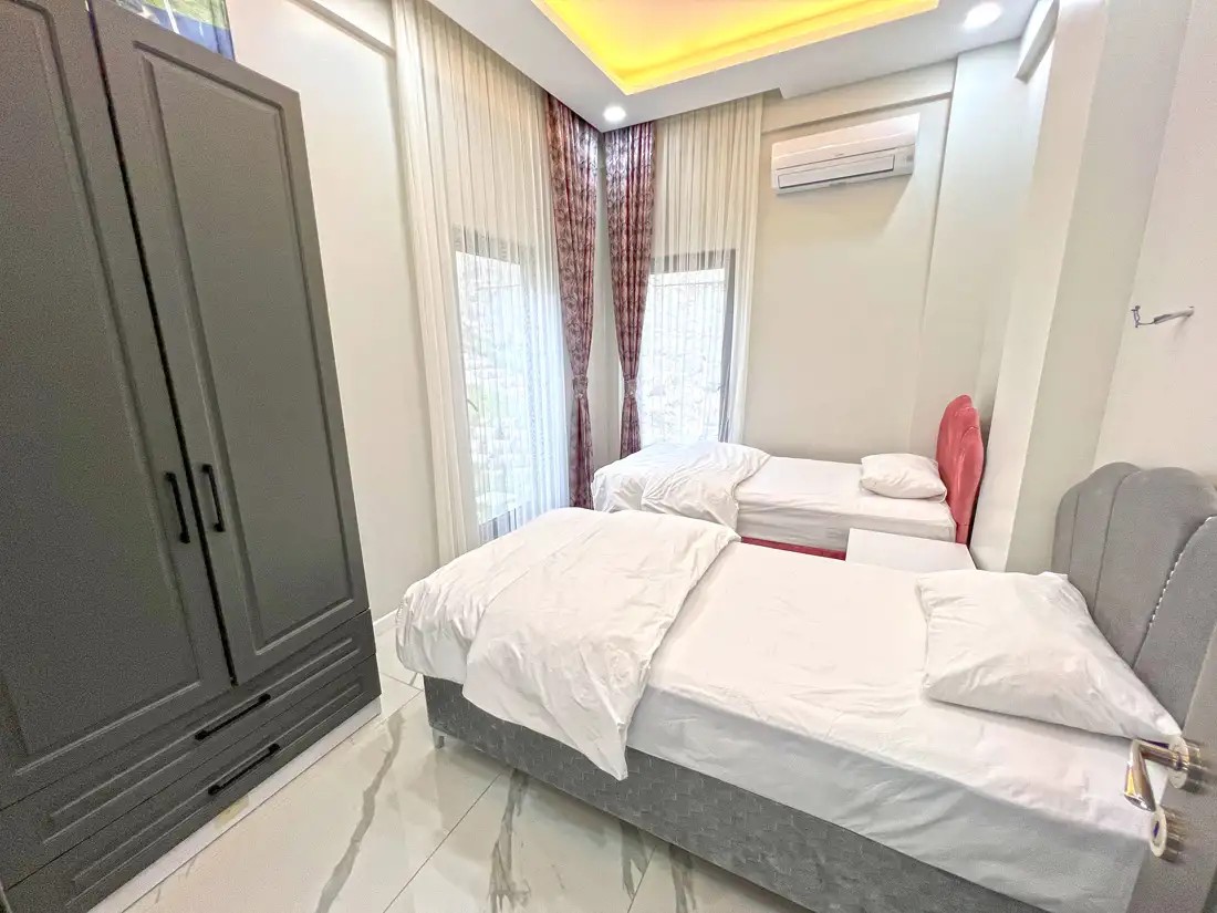 2. Yatak Odası: 2 adet tek kişilik yatak, klima, ebeveyn banyosu bulunmaktadır.