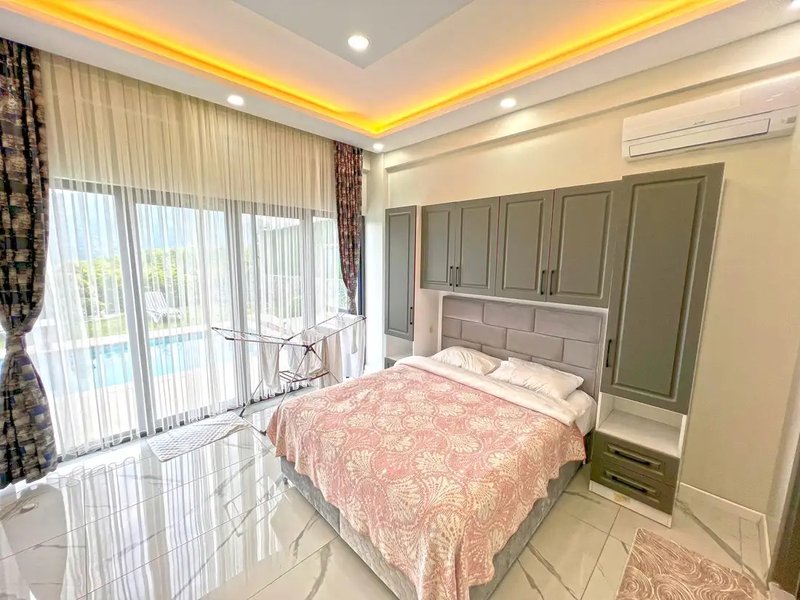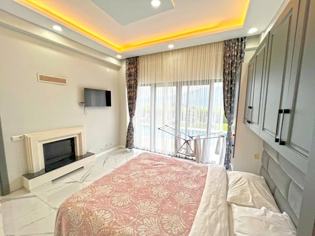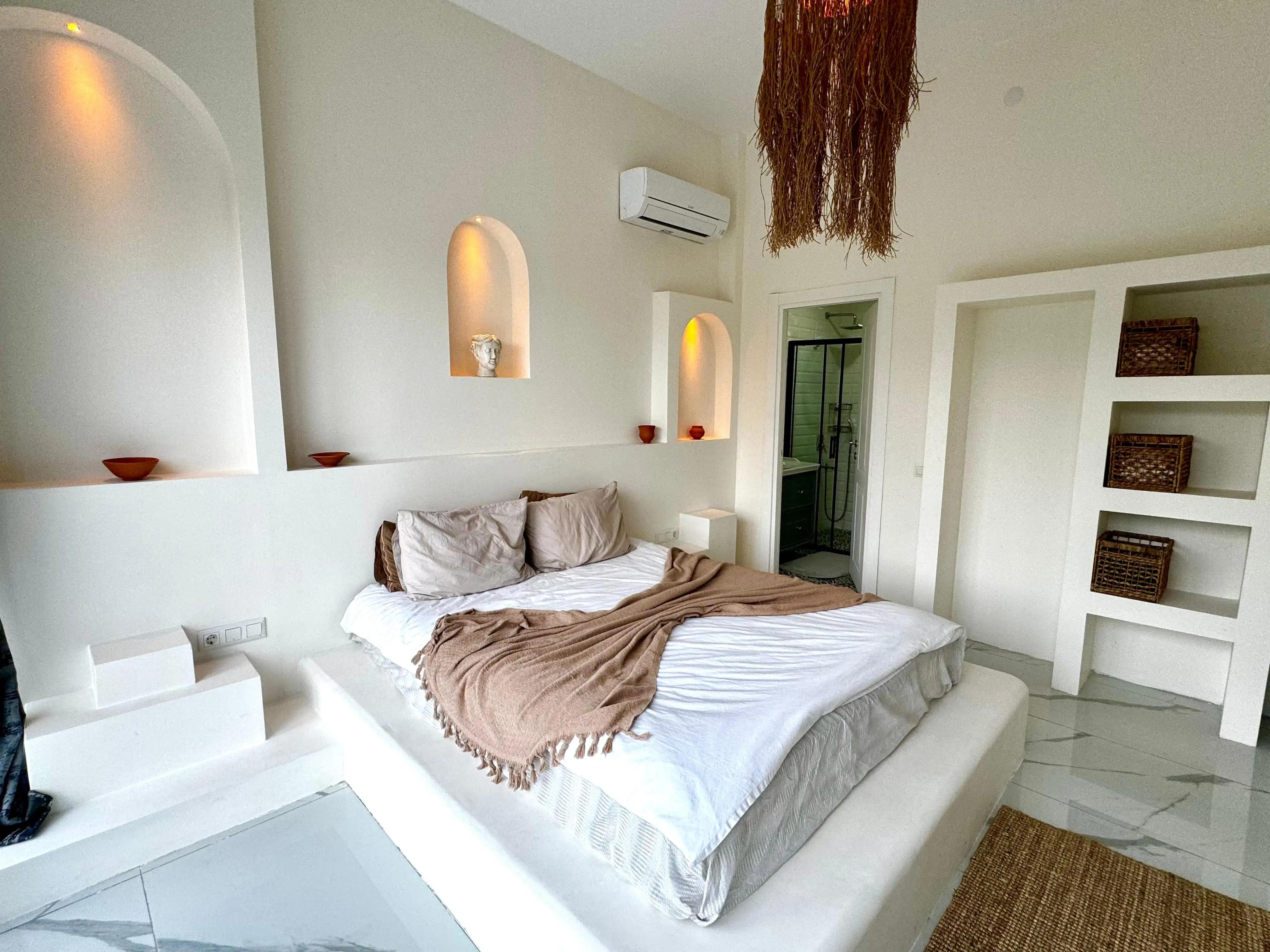 1. Yatak Odası: Çift kişilik yatak, klima, ebeveyn banyosu, TV, bulunmaktadır.