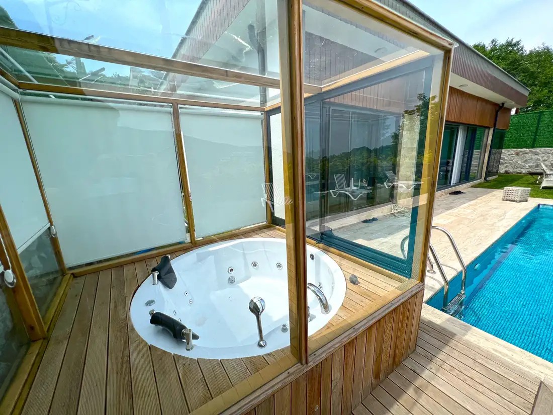 Jakuzili 2+1 Villa No 1: 1 adet bulunmaktadır. Max. 6 yetişkin konaklayabilmektedir.