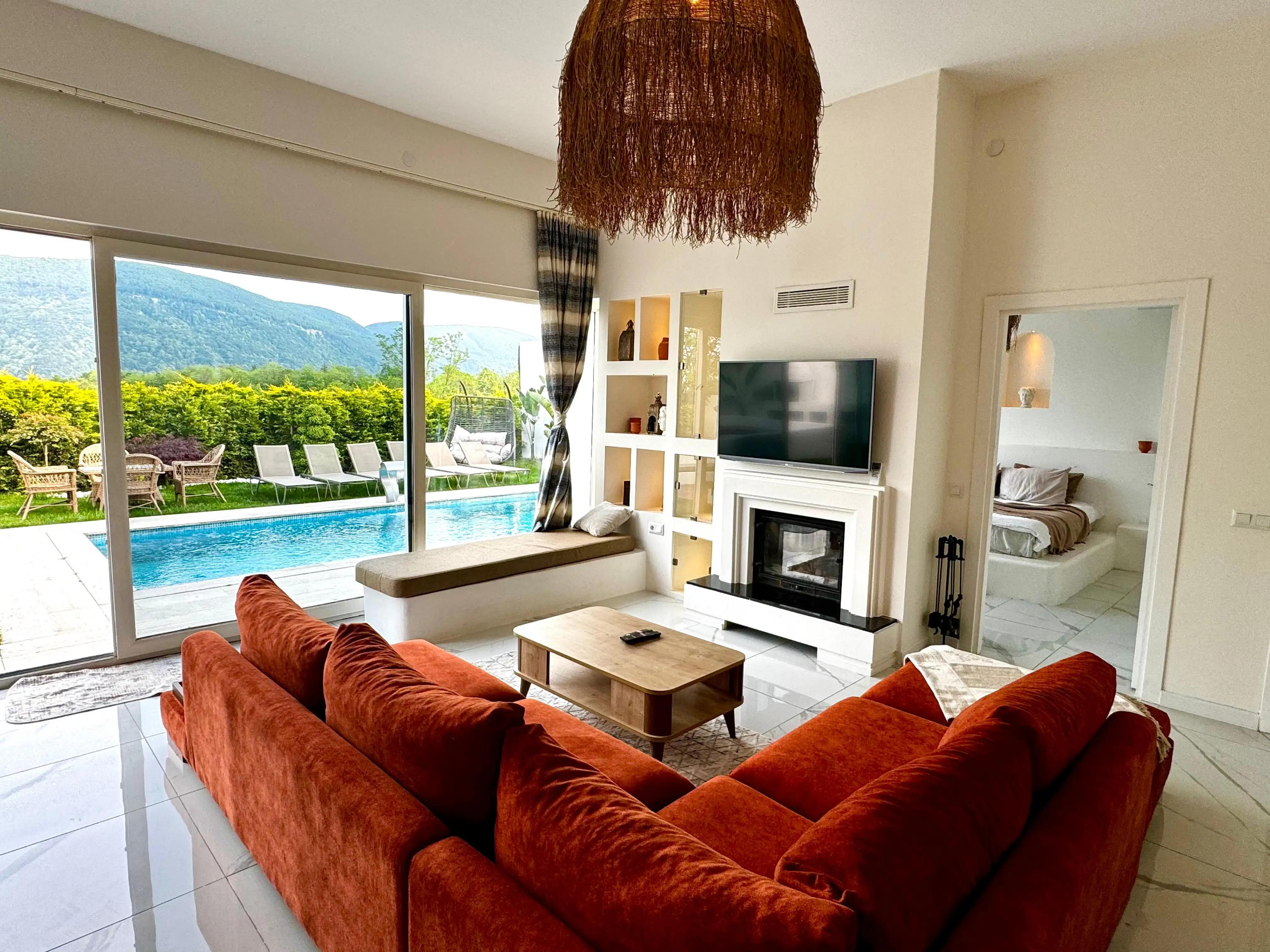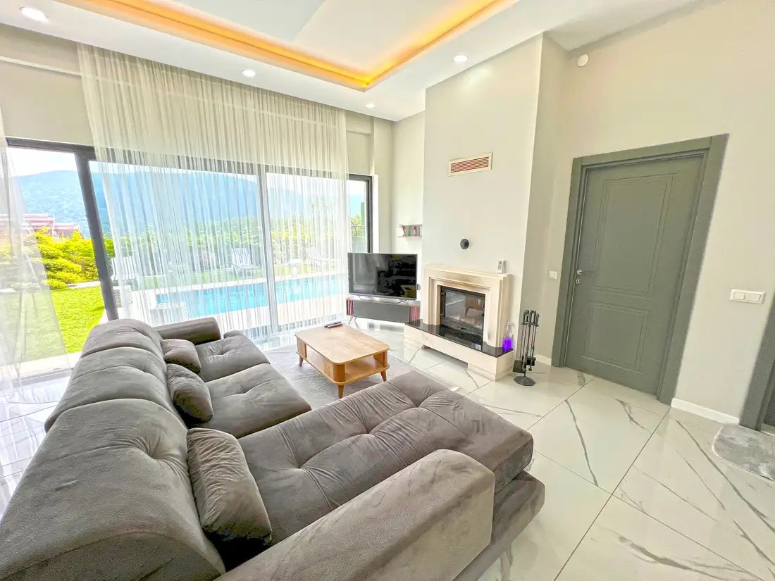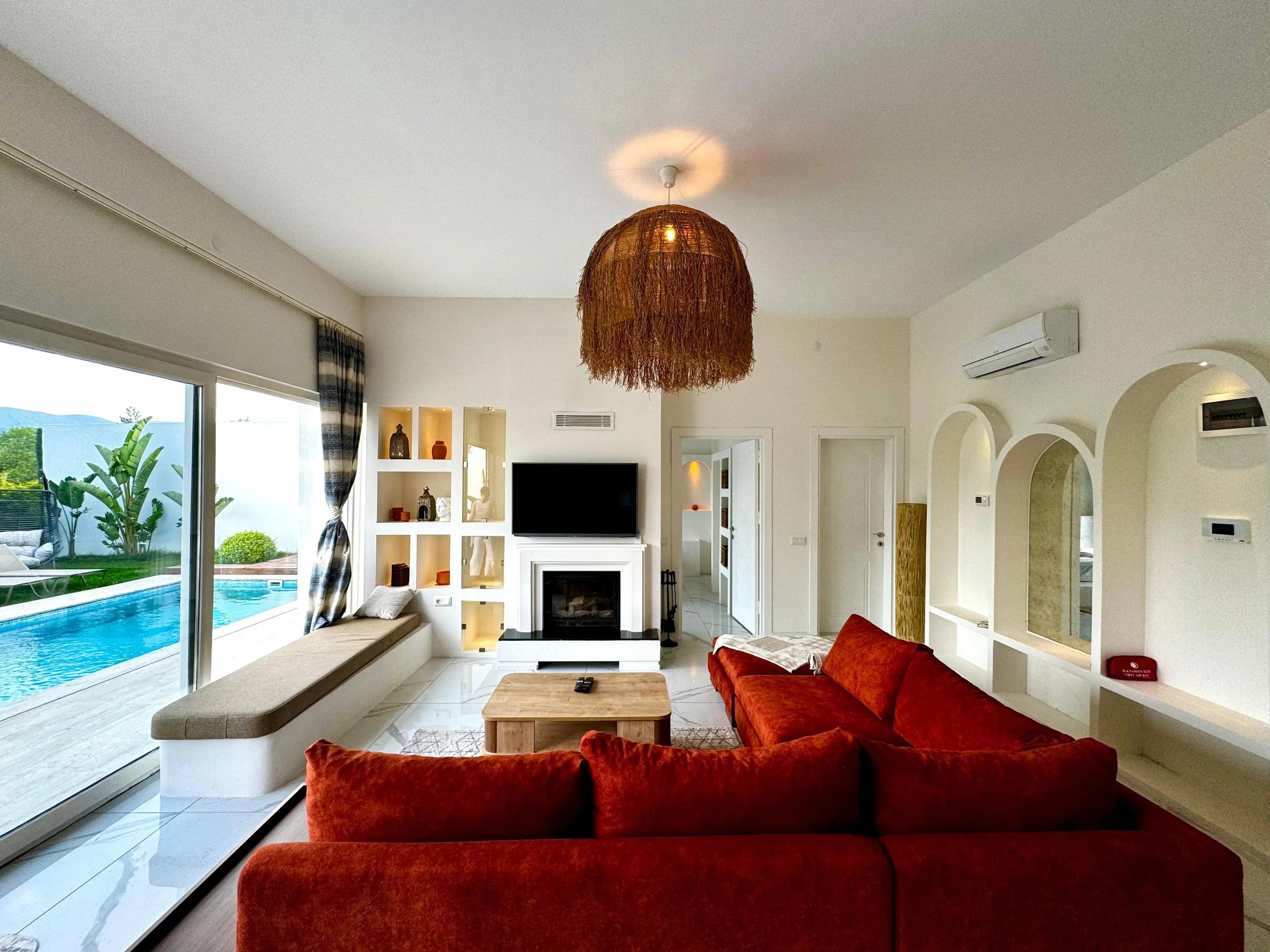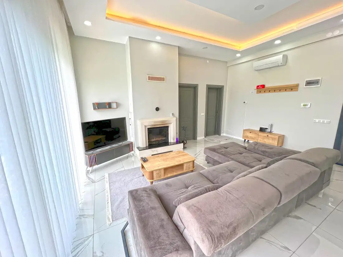 Salon: Açılabilir koltuk, çift taraflı şömine, TV ( smart TV), klima, yemek masası bulunmaktadır.