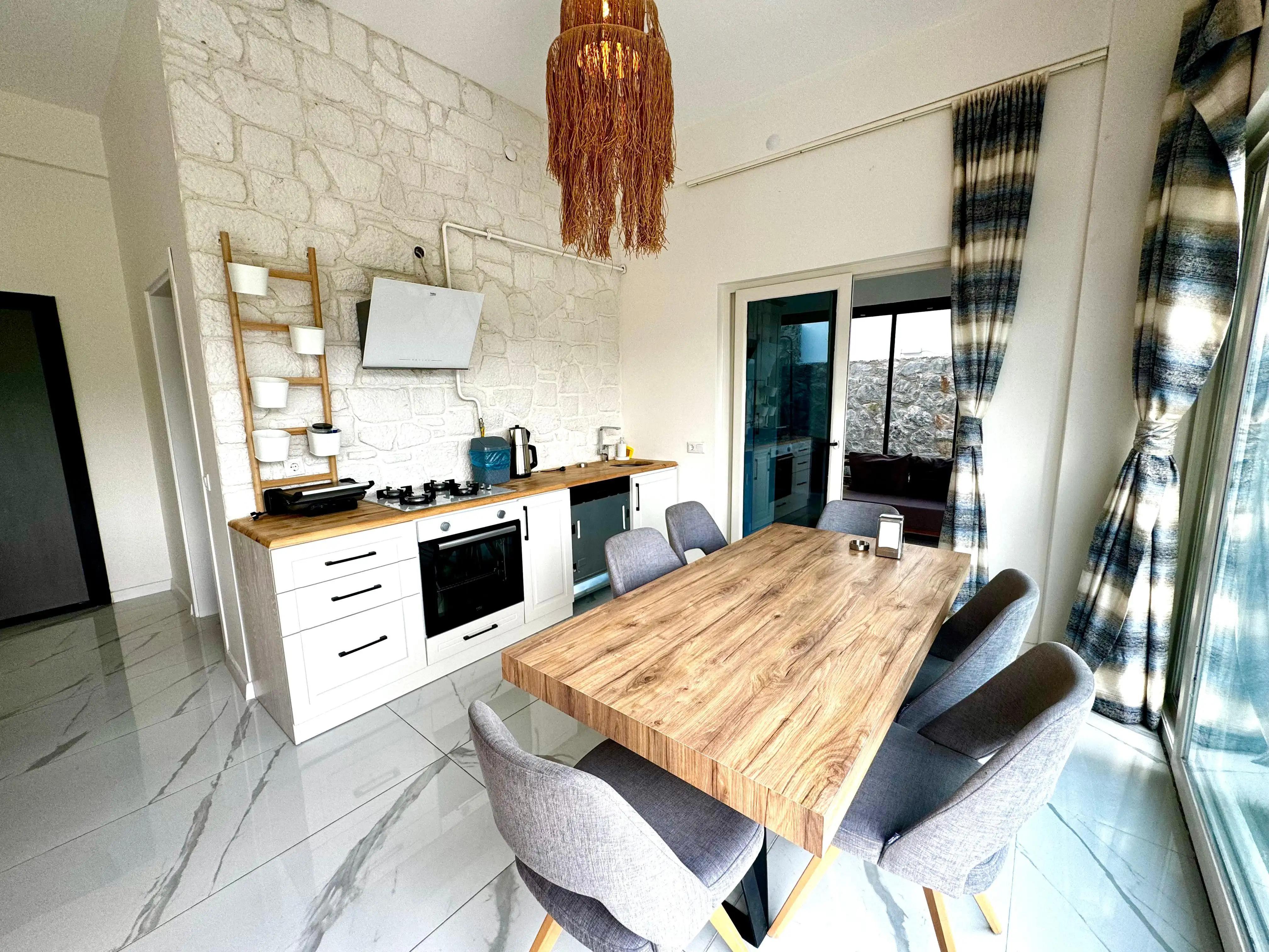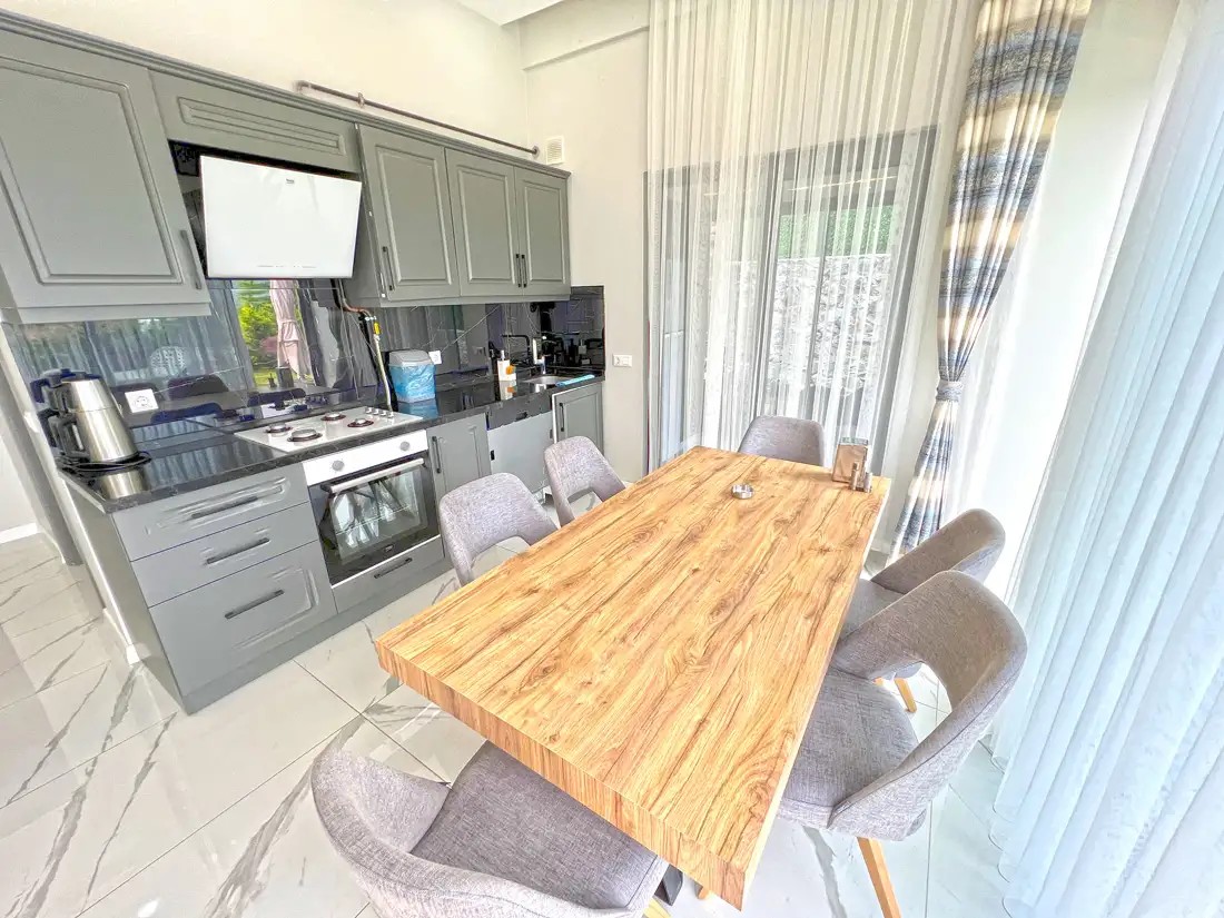 Mutfak: Ocak, fırın, tost makinesi, buzdolabı, çaycı, kahve makinesi ve diğer mutfak araç gereçleri bulunmaktadır.