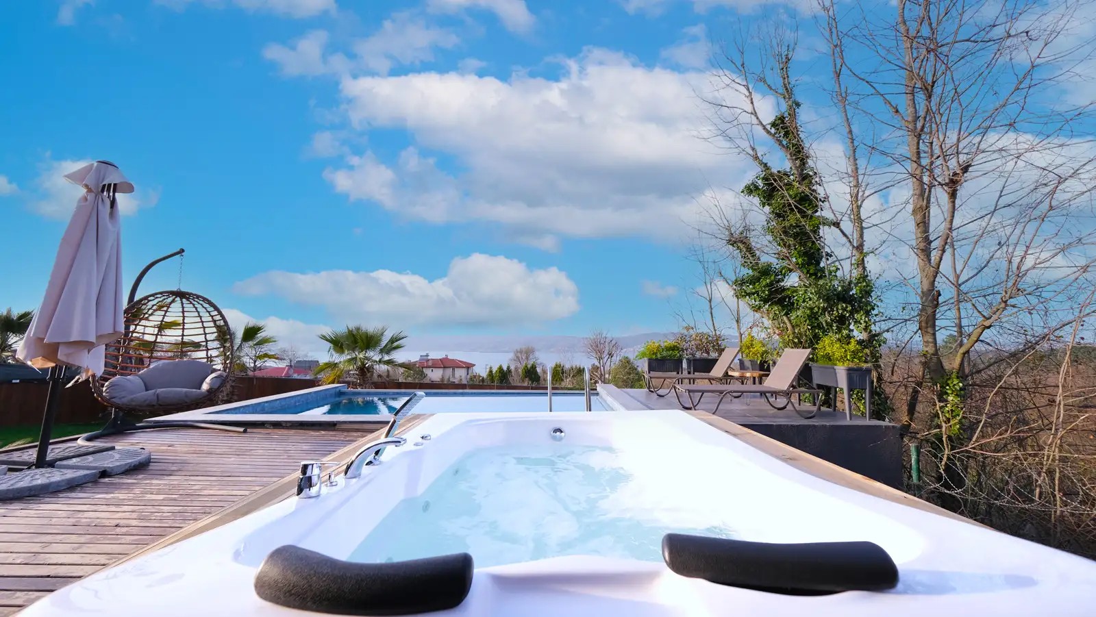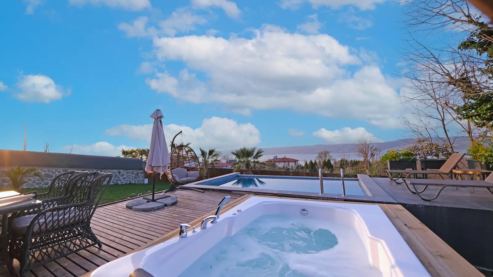 Bahçe: Özel ısıtmalı Havuz (3m x 6m, Derinlik, 1,50), şezlong, jakuzi, şemsiye, barbekü ve bahçe mobilyaları bulunmaktadır.