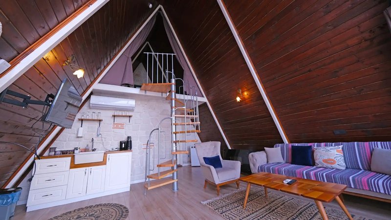 Dubleks Bungalov 2+1: Tesiste toplam 2 adet bulunmaktadır. Maksimum 5 yetişkin konaklaması için uygundur, 5. kişi açılabilir koltukta yatabilir.